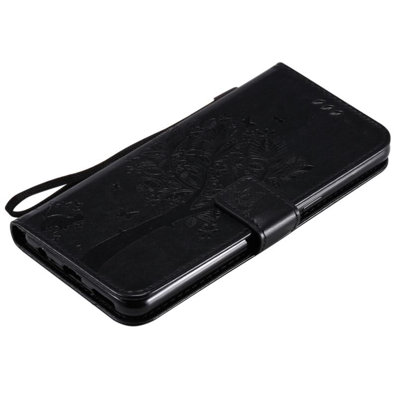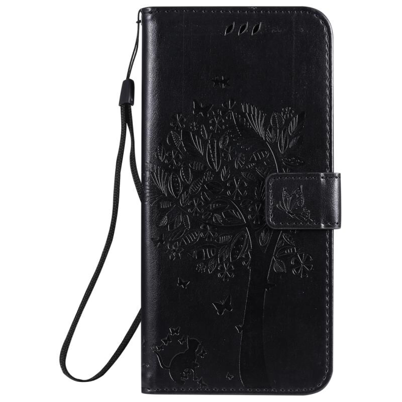 Θήκη δέρματος οριζόντιας αναδίπλωσης με ανάγλυφο σχέδιο δέντρου & γάτας για LG K41S / K51S με βάση στήριξης & θήκες καρτών & πορτοφόλι & κορδόνι (Πράσινο)