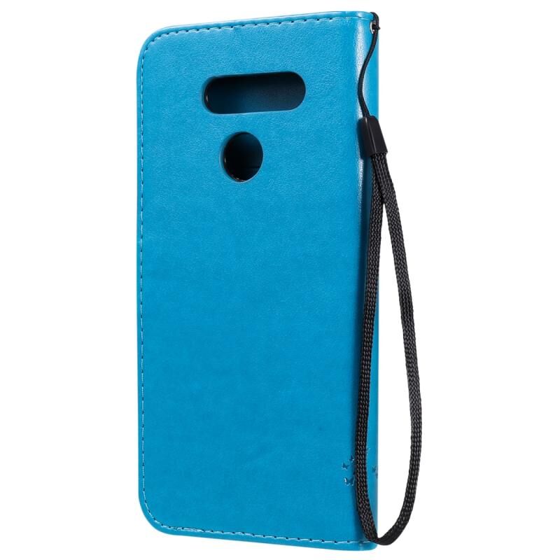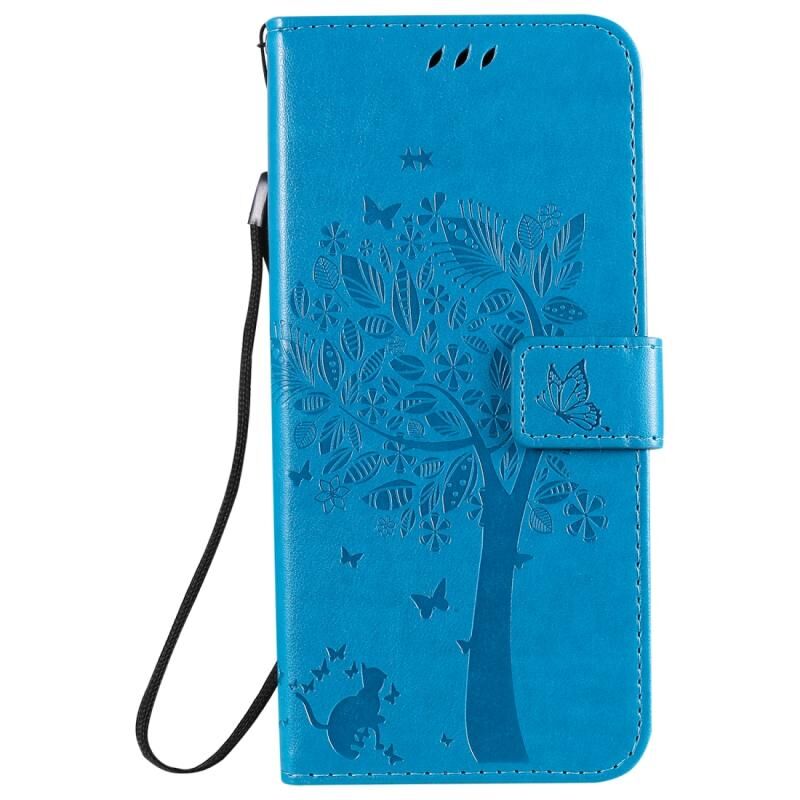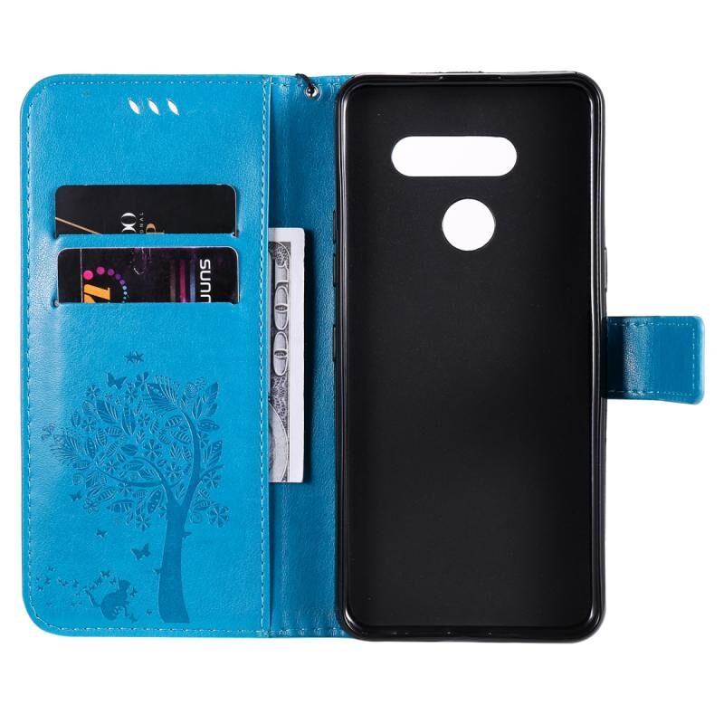 Θήκη δέρματος οριζόντιας αναδίπλωσης με ανάγλυφο σχέδιο δέντρου & γάτας για LG K41S / K51S με βάση στήριξης & θήκες καρτών & πορτοφόλι & κορδόνι (Πράσινο)