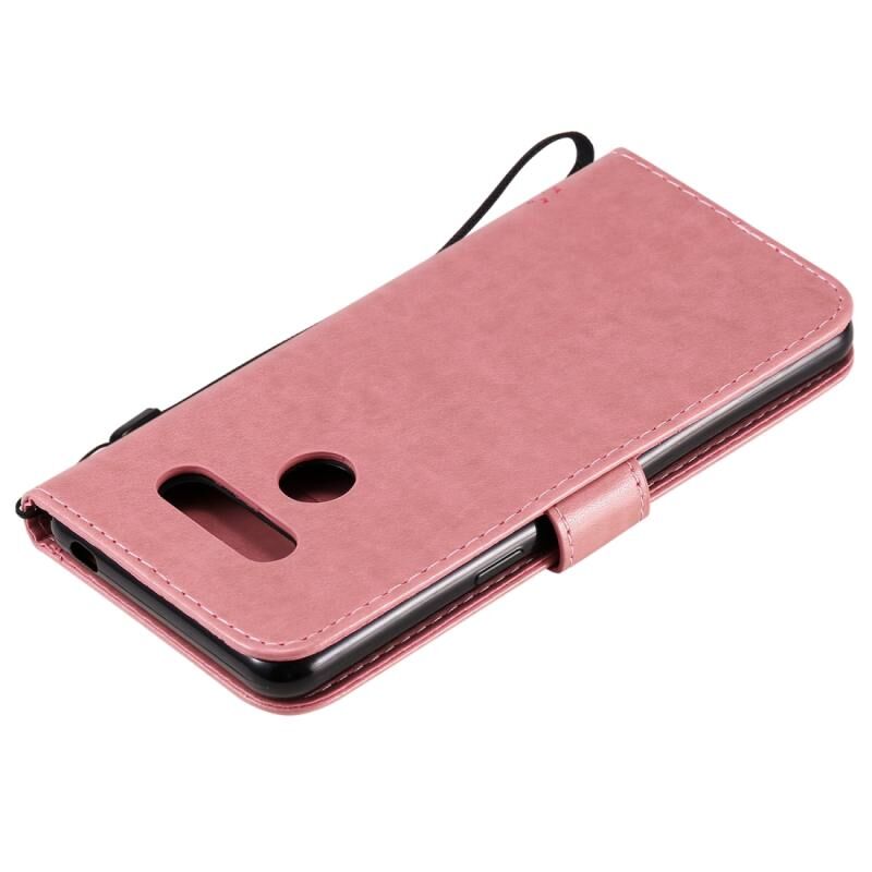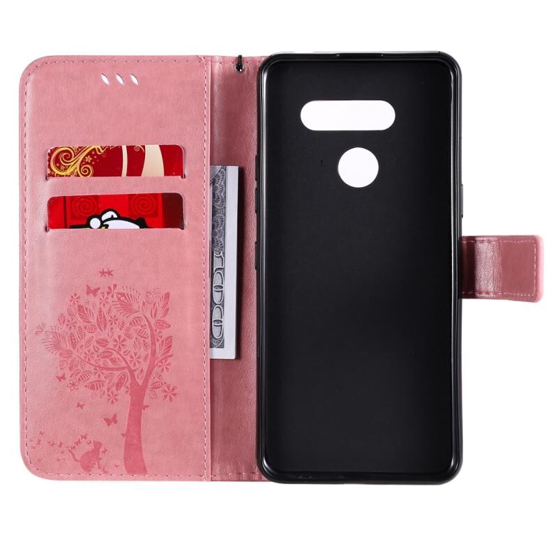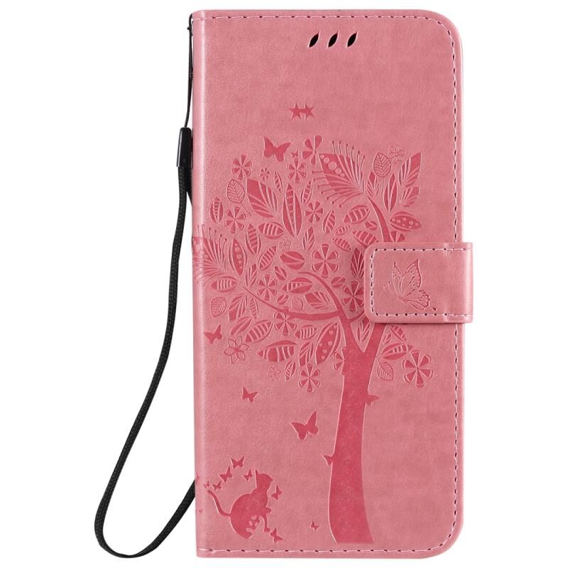 Θήκη δέρματος οριζόντιας αναδίπλωσης με ανάγλυφο σχέδιο δέντρου & γάτας για LG K41S / K51S με βάση στήριξης & θήκες καρτών & πορτοφόλι & κορδόνι (Πράσινο)