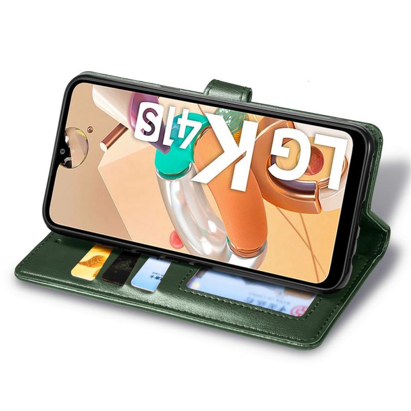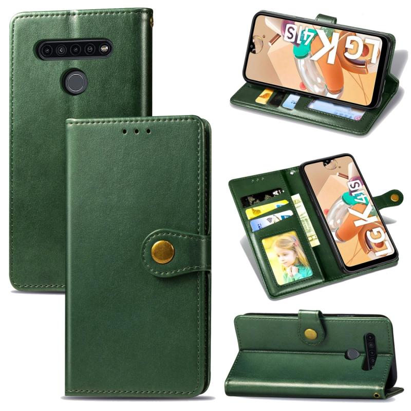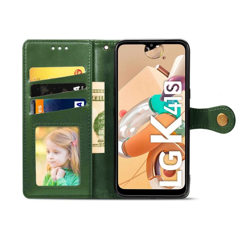 For LG K41S Retro Solid Color Leather Buckle Phone Case with Lanyard & Photo Frame & Card Slot & Wallet & Stand Function(Green)