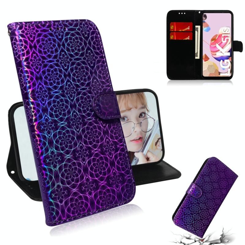 Για LG K41S Αμιγές χρώμα πολύχρωμο μαγνητικό πόρπη οριζόντια Flip PU δέρμα υπόθεση με κάτοχο & υποδοχές για κάρτες & πορτοφόλι & Lanyard (μωβ)