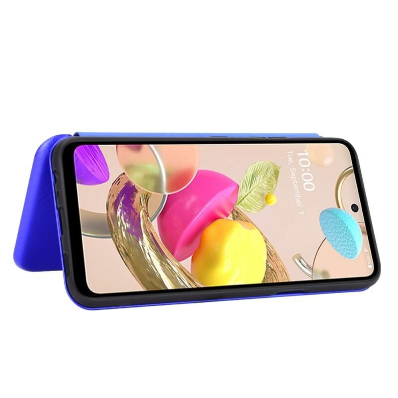 For LG K42 Carbon Fiber Texture Horizontal Flip TPU + PC + PU Leather Case with Card Slot(Blue)