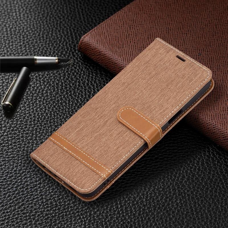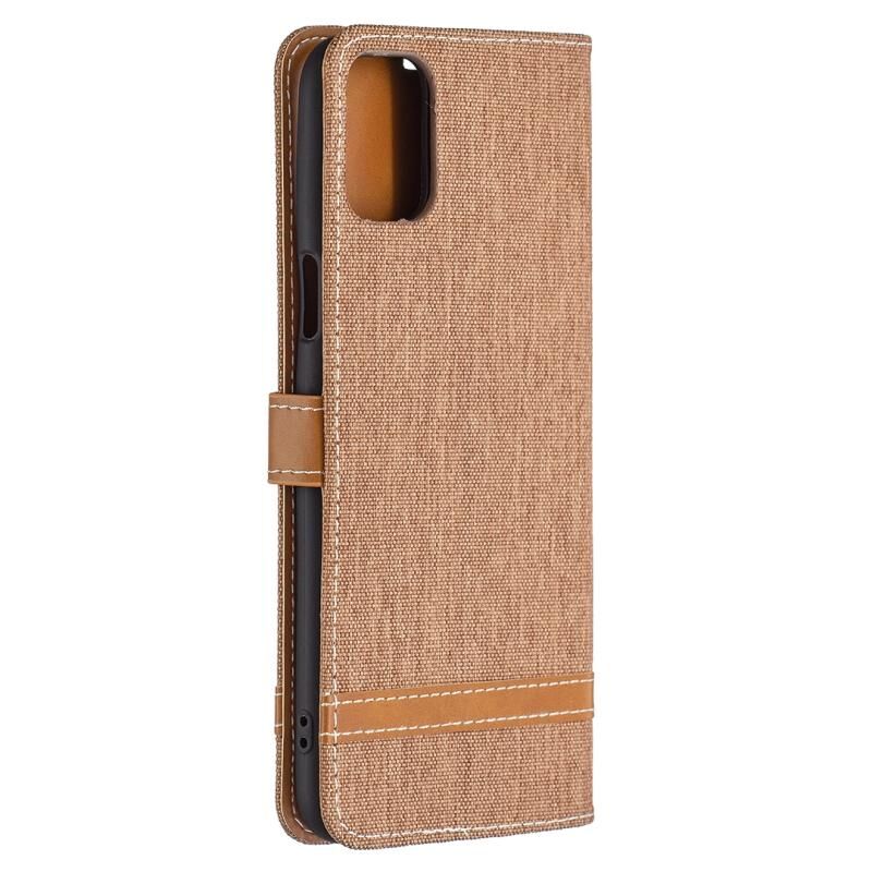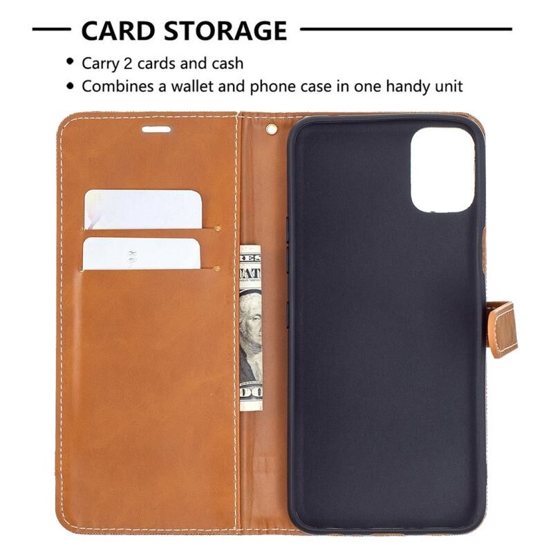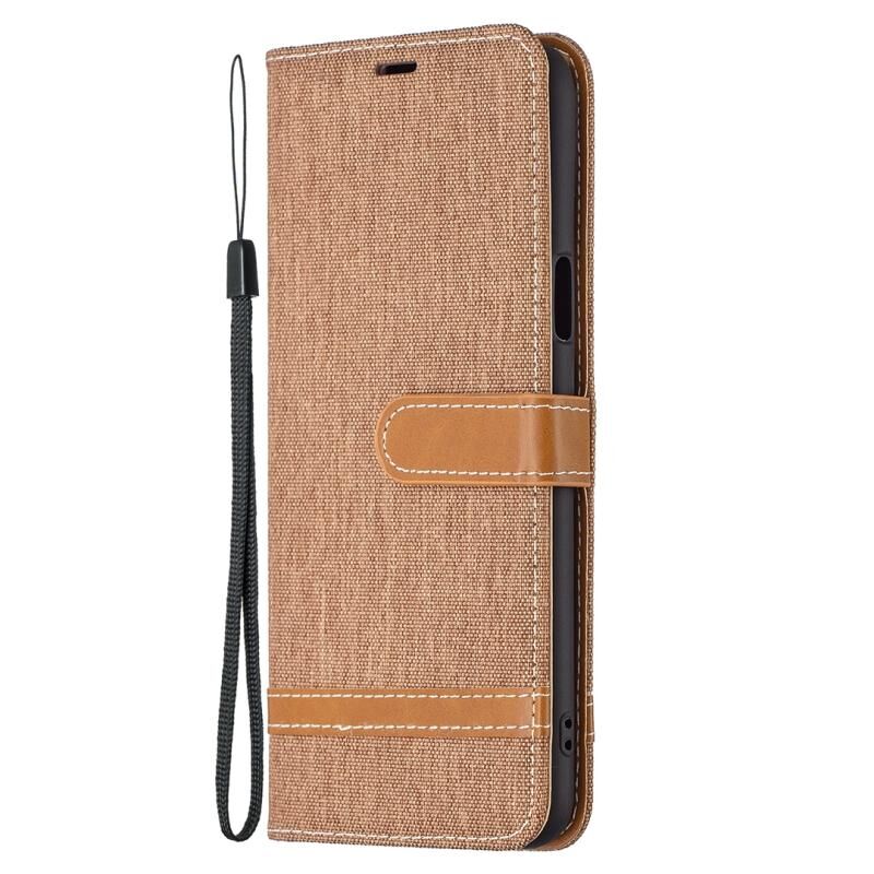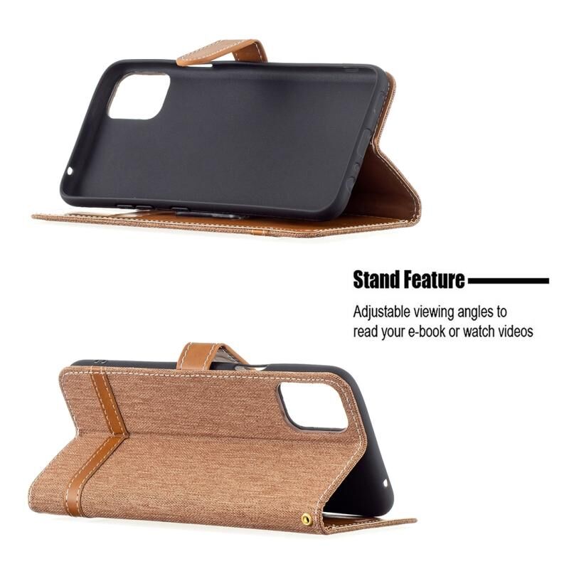 Για το LG K42 Χρώμα ταιριάζει Denim υφή οριζόντια Flip δερμάτινη θήκη με θήκη & υποδοχές για κάρτες & πορτοφόλι & κορδόνι (καφέ)