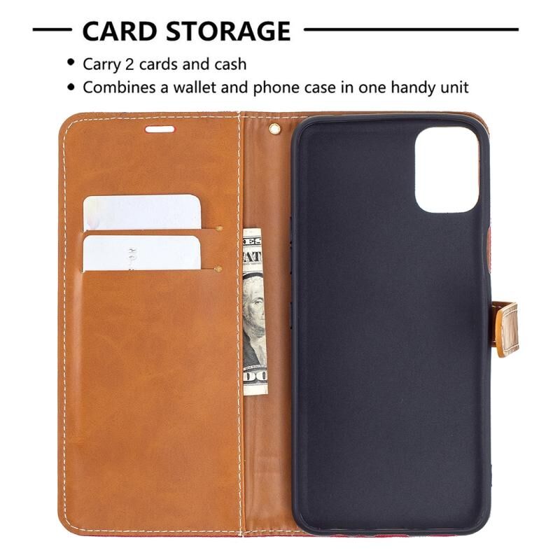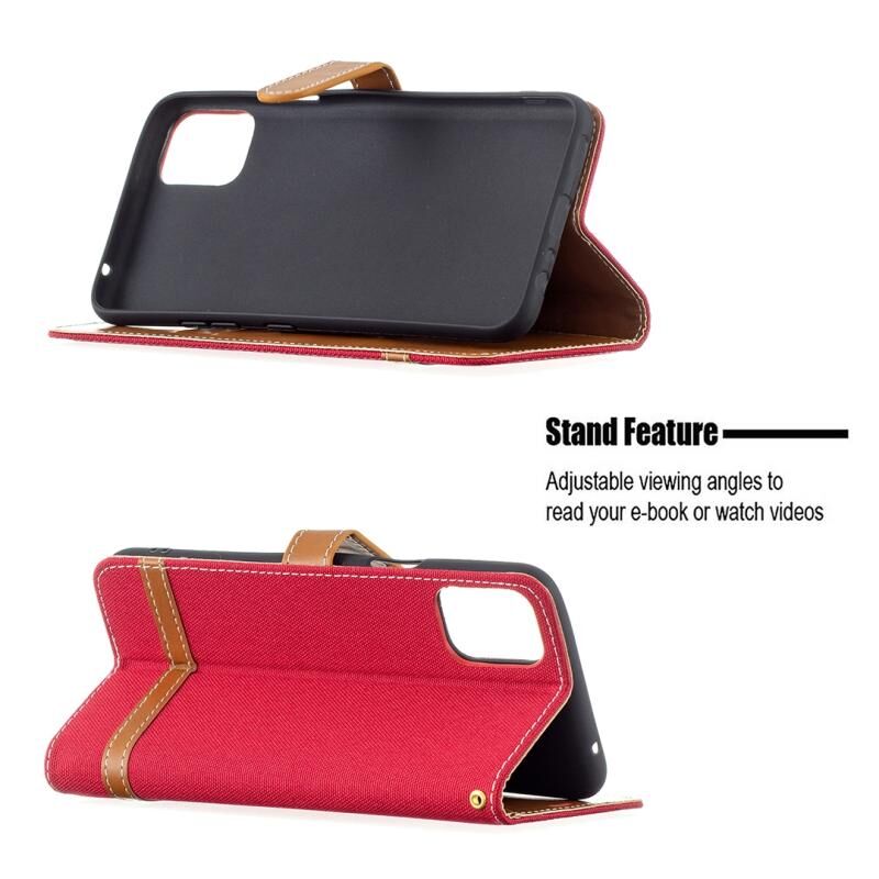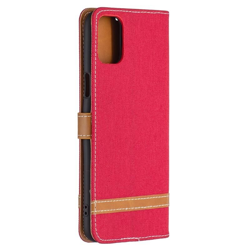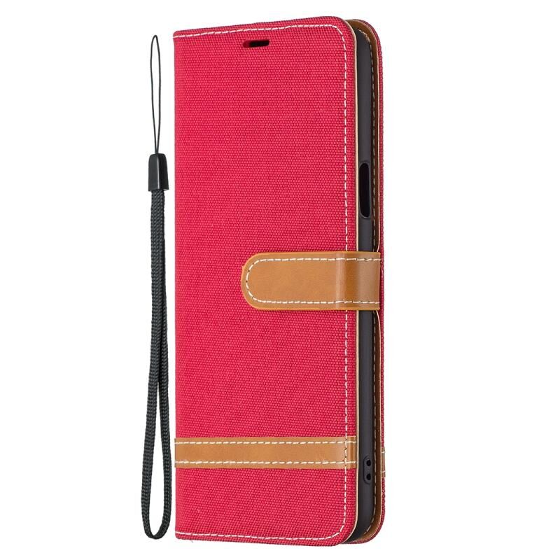 Για LG K42 Χρώμα ταιριάζει Denim υφή οριζόντια Flip δερμάτινη θήκη με θήκη & υποδοχές για κάρτες & πορτοφόλι & κορδόνι (κόκκινο)
