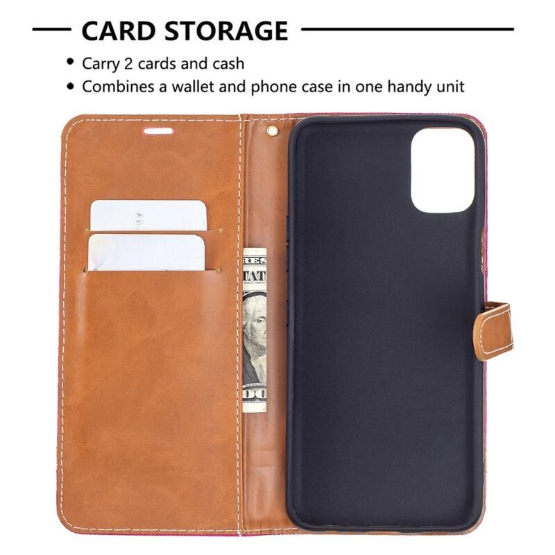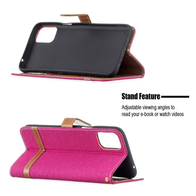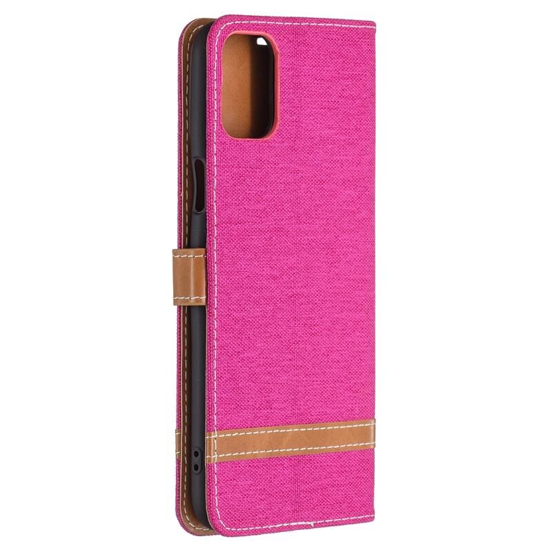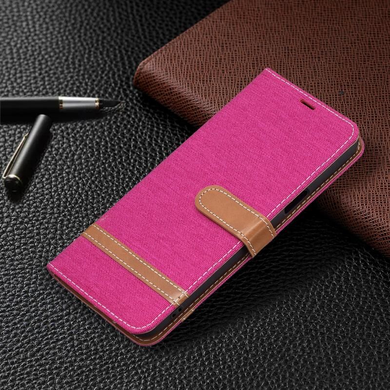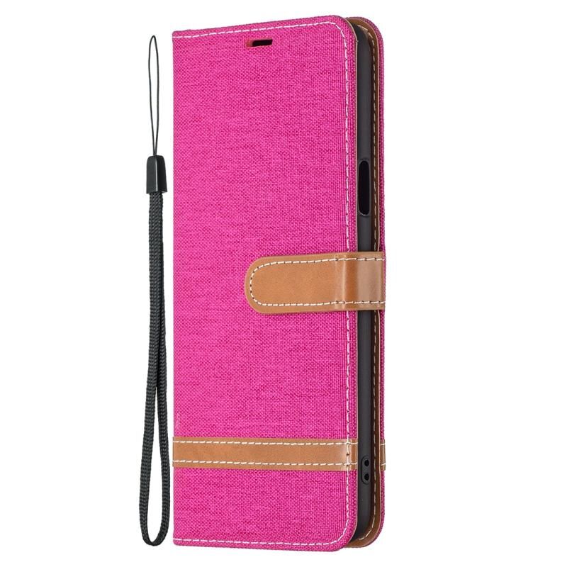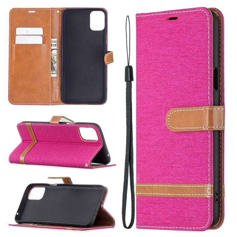 Για το LG K42 Χρώμα ταιριάζει Denim υφή οριζόντια Flip δερμάτινη θήκη με θήκη & υποδοχές για κάρτες & πορτοφόλι & κορδόνι (Rose Red)