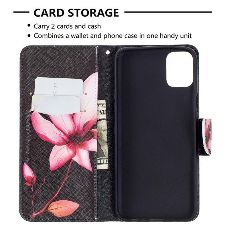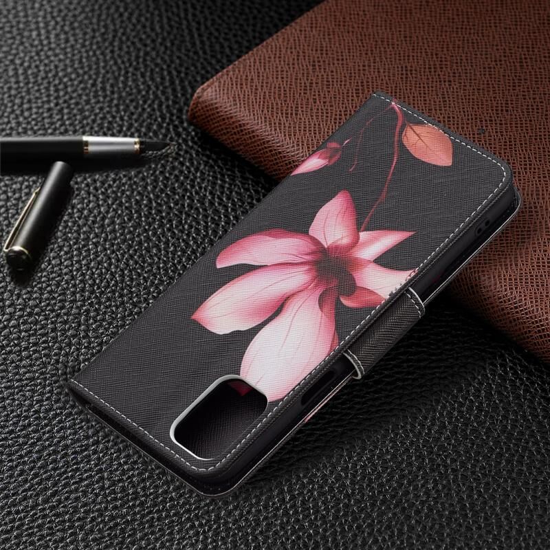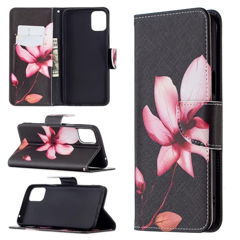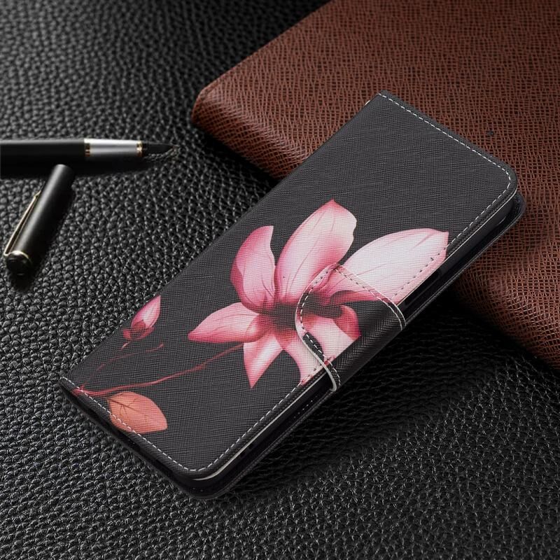 Θήκη δέρματος οριζόντιας αναδίπλωσης με σχέδιο πολύχρωμου σχεδίου για LG K42 με βάση & υποδοχές καρτών & πορτοφόλι (Λωτός)