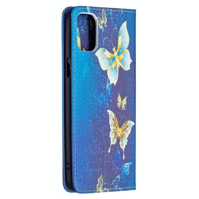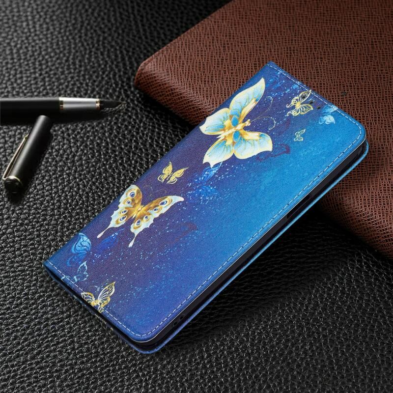 For LG K42 Colored Drawing Pattern Invisible Magnetic Horizontal Flip PU Leather Case with Holder & Card Slots & Wallet(Gold Butterflies)