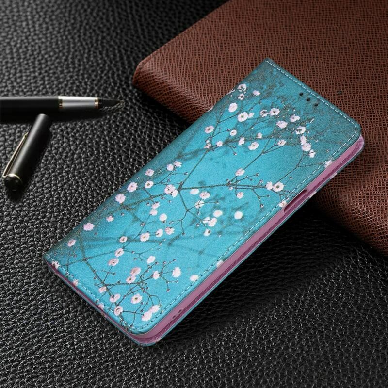 For LG K42 Colored Drawing Pattern Invisible Magnetic Horizontal Flip PU Leather Case with Holder & Card Slots & Wallet(Plum Blossom)