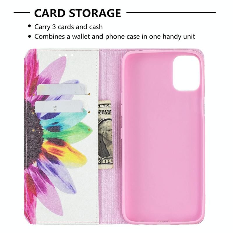 For LG K42 Colored Drawing Pattern Invisible Magnetic Horizontal Flip PU Leather Case with Holder & Card Slots & Wallet(Sun Flower)