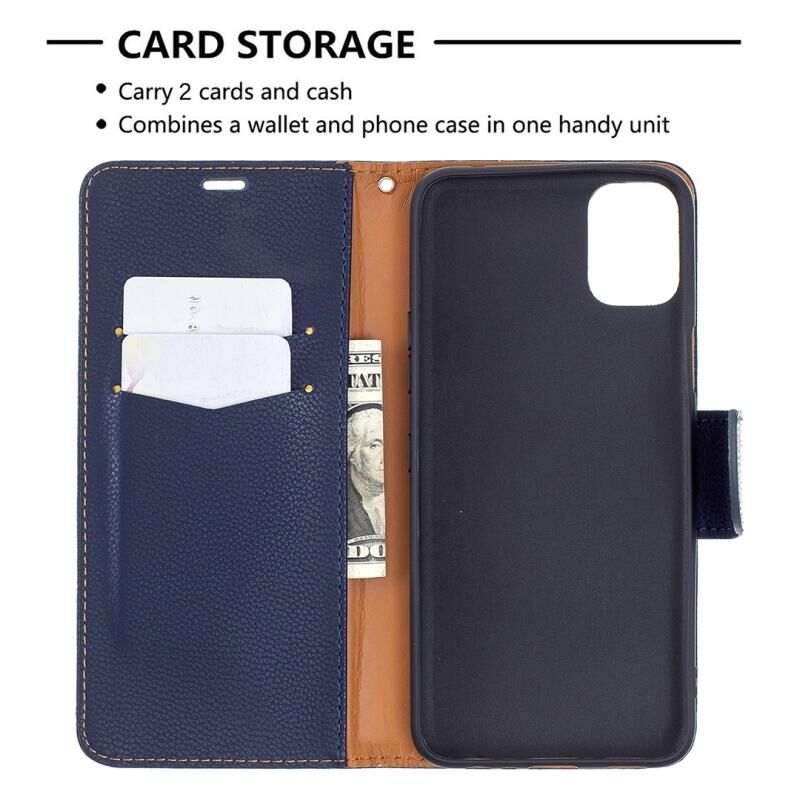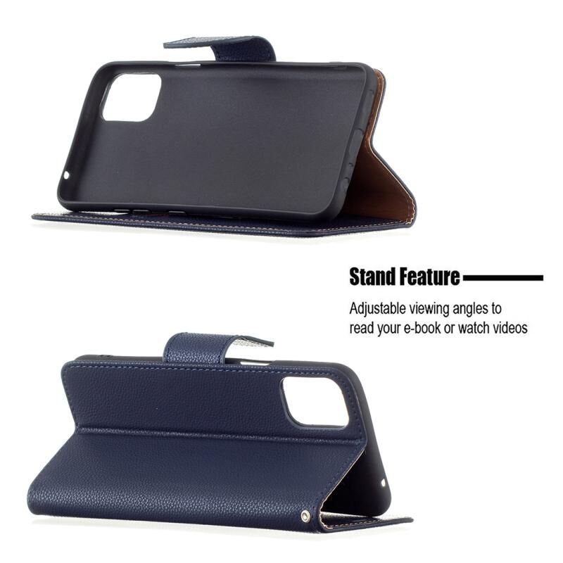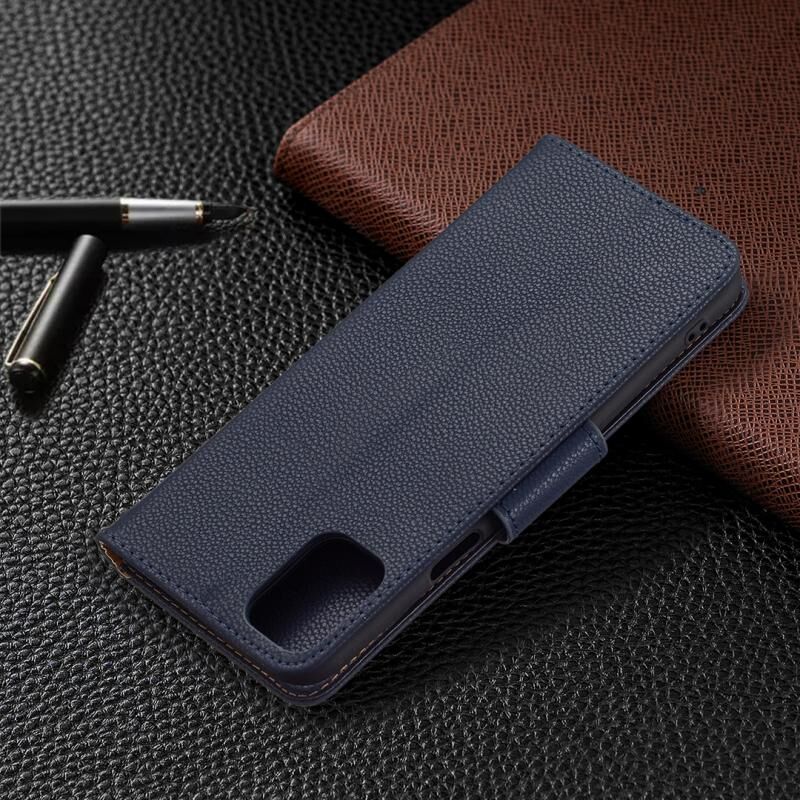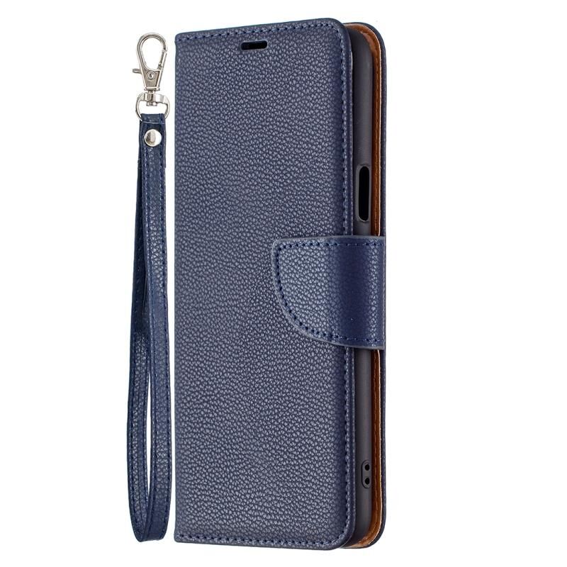 Για LG K42 Litchi Υφή καθαρό χρώμα οριζόντια Flip δερμάτινη θήκη με θήκη & υποδοχές για κάρτες & πορτοφόλι & κορδόνι (σκούρο μπλε)