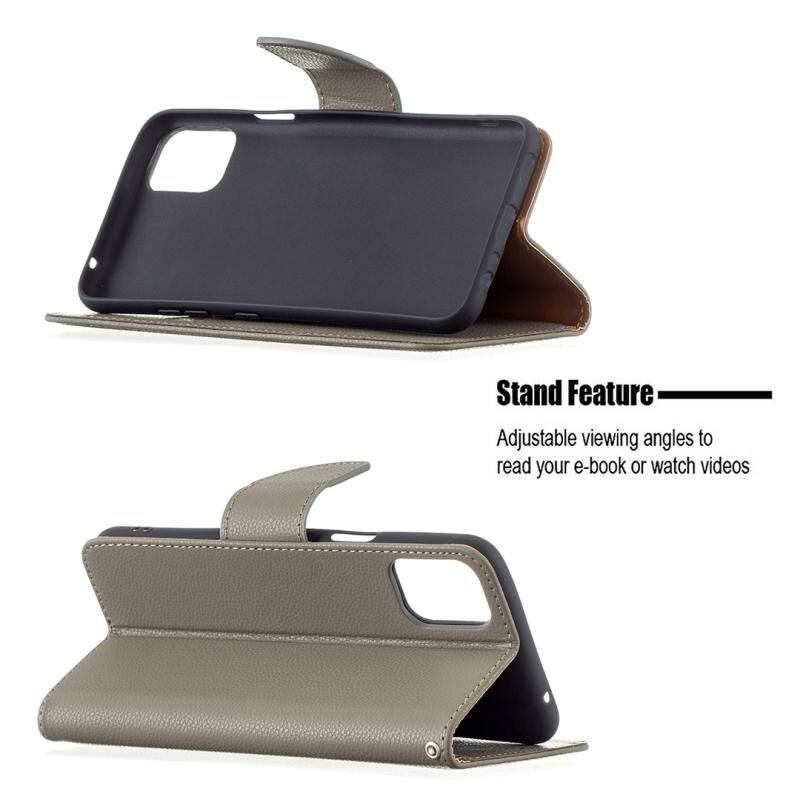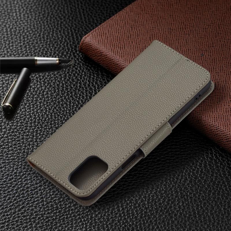 Για LG K42 Litchi υφή καθαρό χρώμα οριζόντια Flip δερμάτινη θήκη με θήκη & υποδοχές για κάρτες & πορτοφόλι & κορδόνι (γκρι)