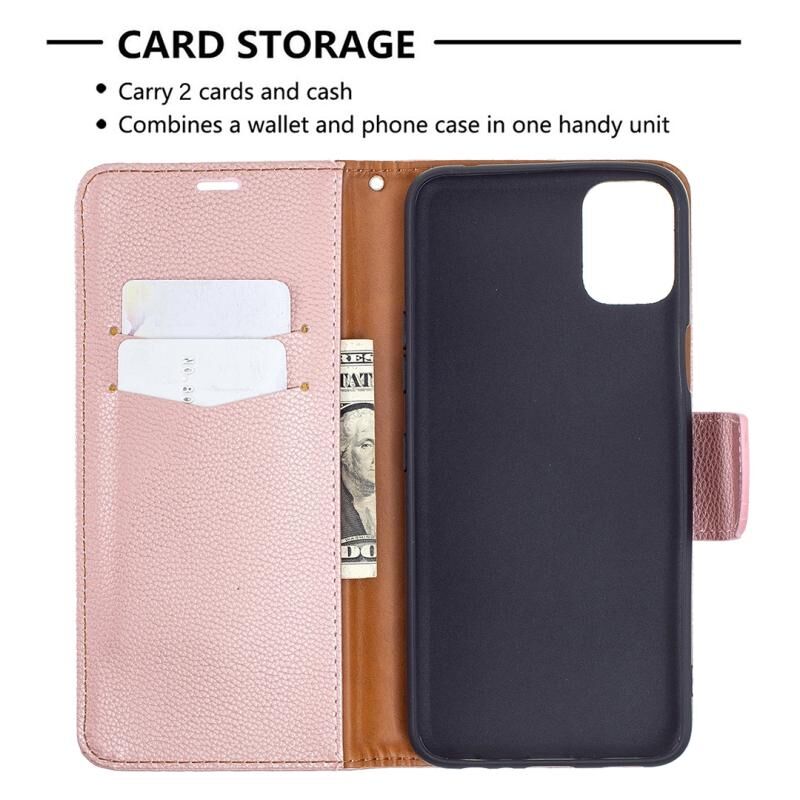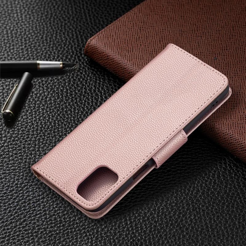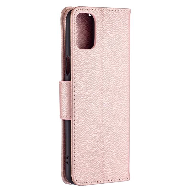 Για LG K42 Litchi Υφή καθαρό χρώμα οριζόντια Flip δερμάτινη θήκη με θήκη & υποδοχές για κάρτες & πορτοφόλι & κορδόνι (Rose Gold)