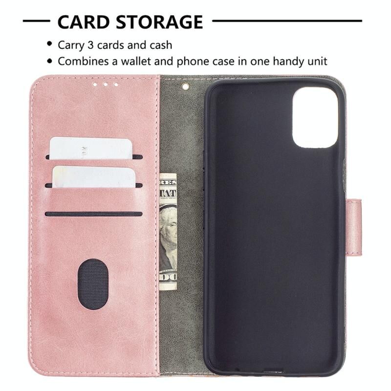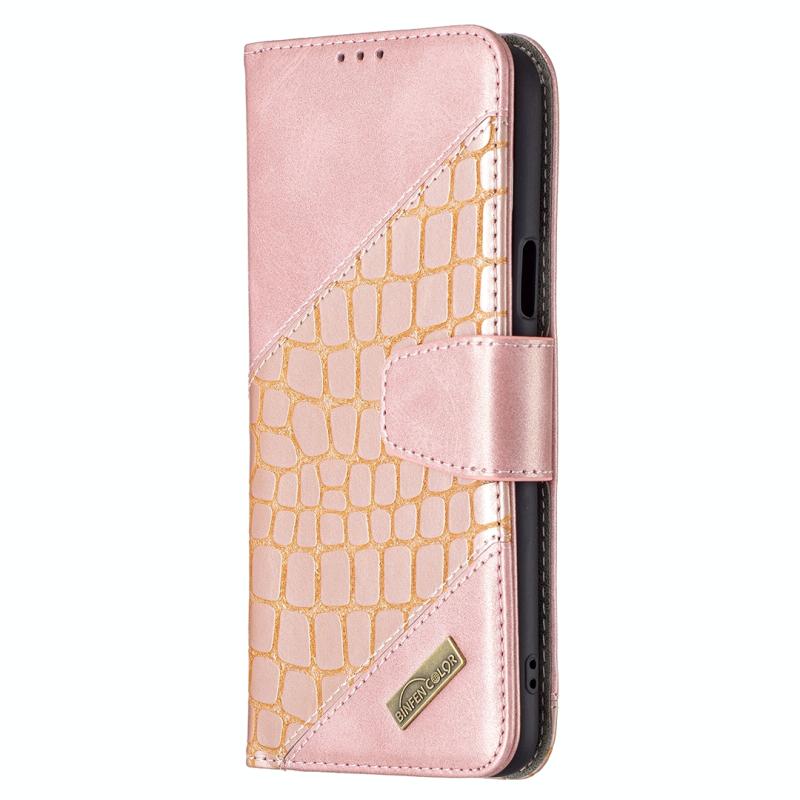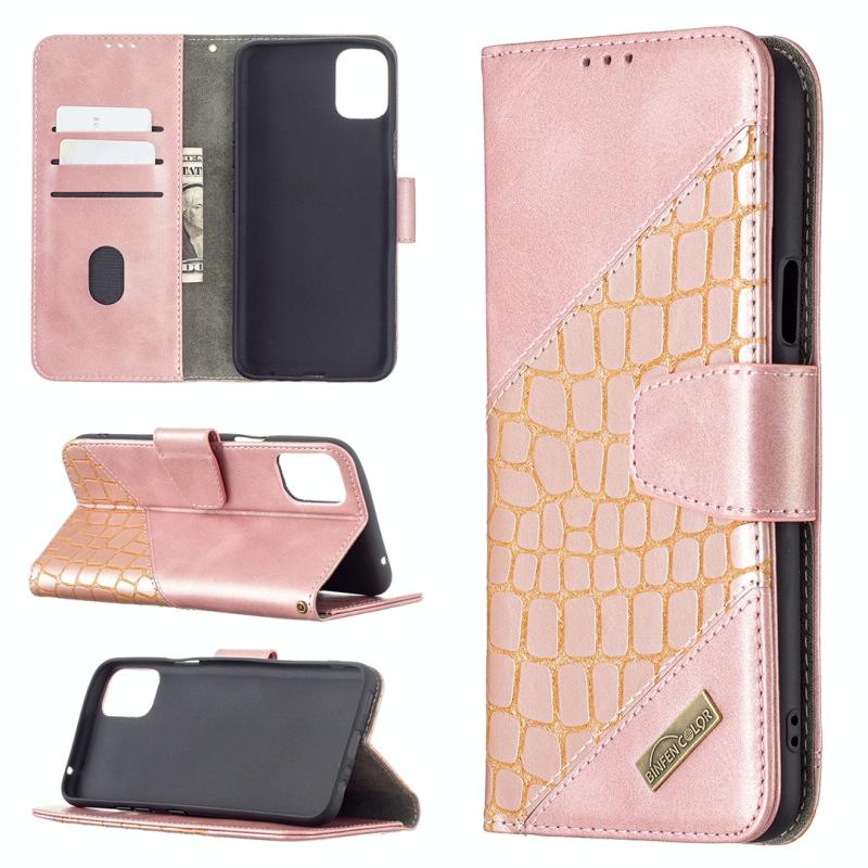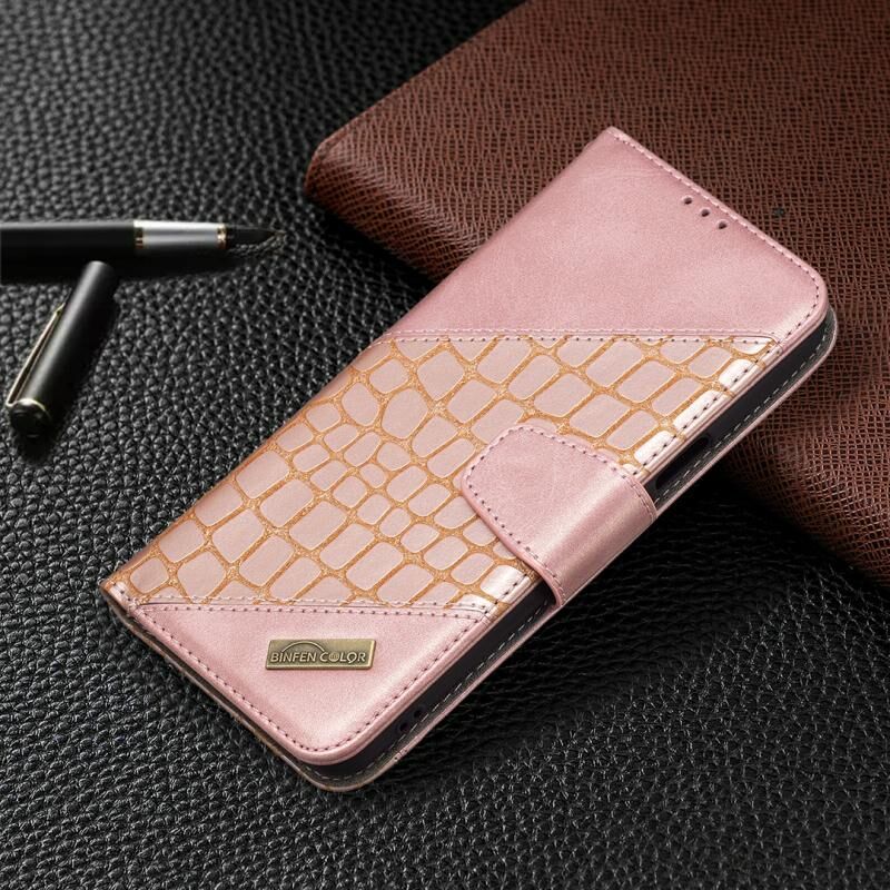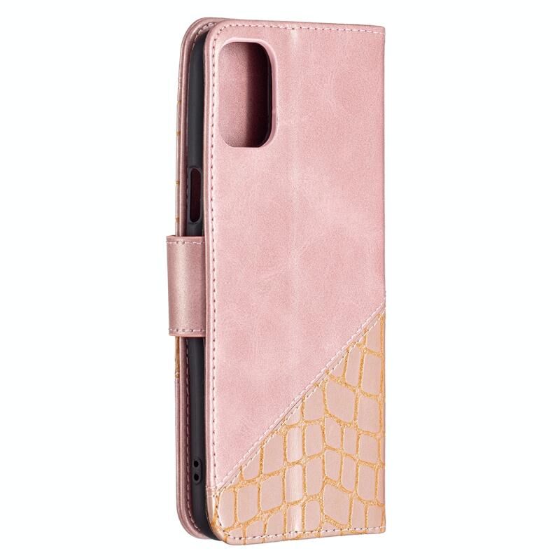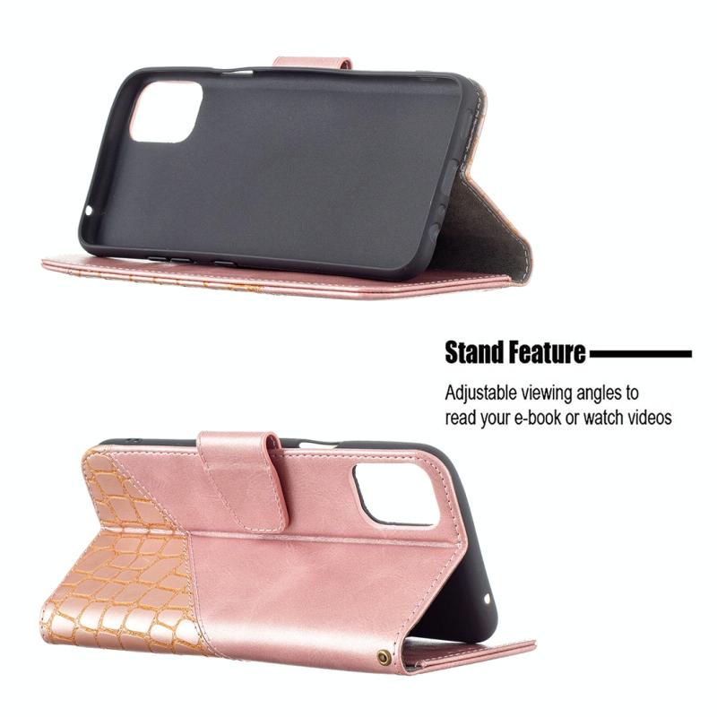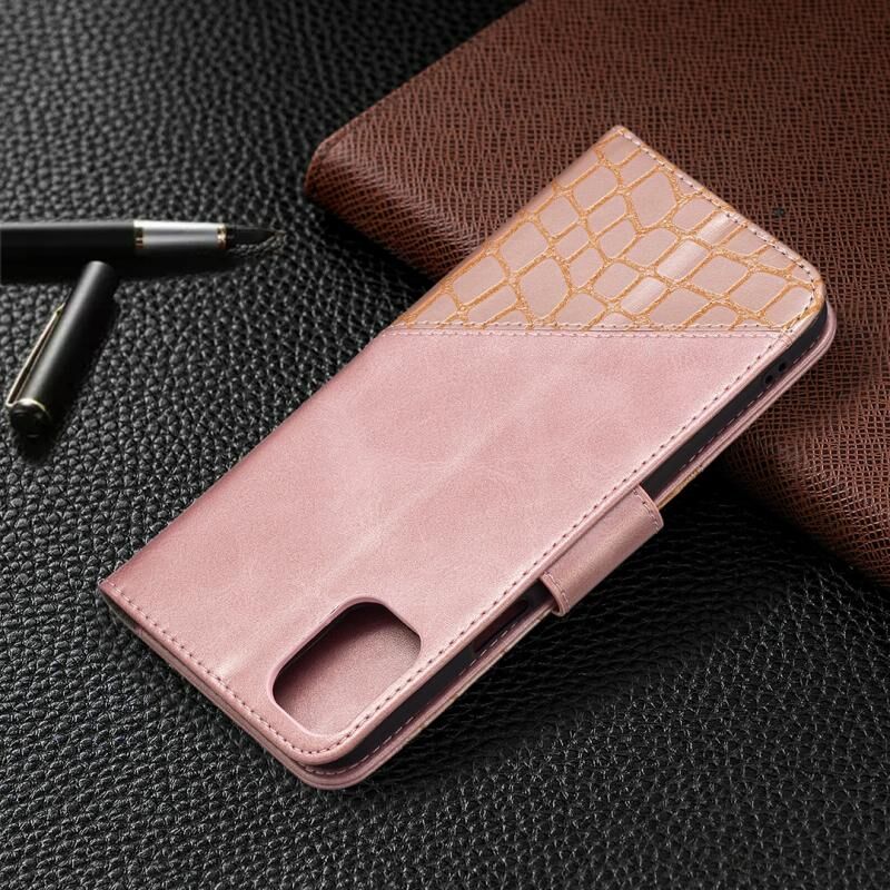 Θήκη για LG K42 σε ταίριαστο χρώμα με υφή κροκόδειλου, οριζόντια, από δερματίνη PU με πορτοφόλι, βάση & θήκες για κάρτες (Ροζ χρυσός)
