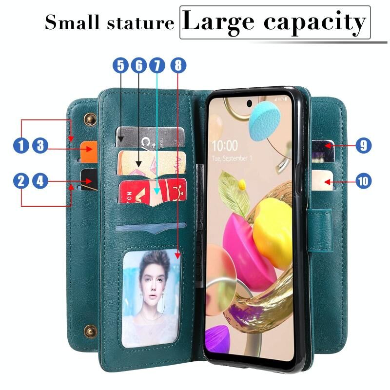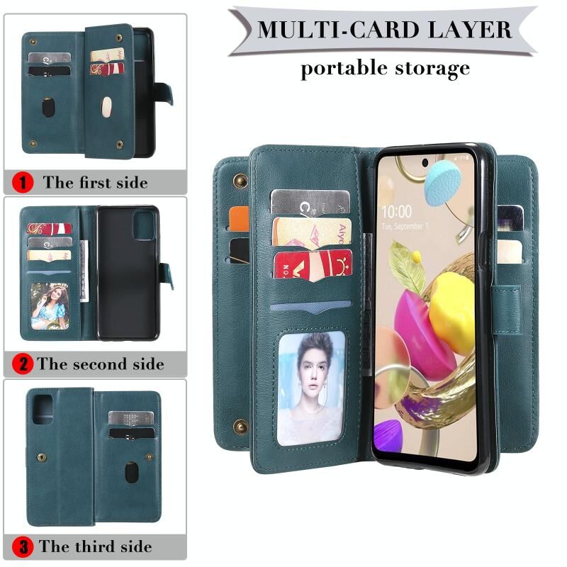 Για το LG K42 Πολυλειτουργική μαγνητική χάλκινη πόρπη οριζόντια Flip Solid Color δερμάτινη θήκη με 10 υποδοχές για κάρτες & πορτοφόλι & θήκη & κορνίζα φωτογραφιών (μωβ)