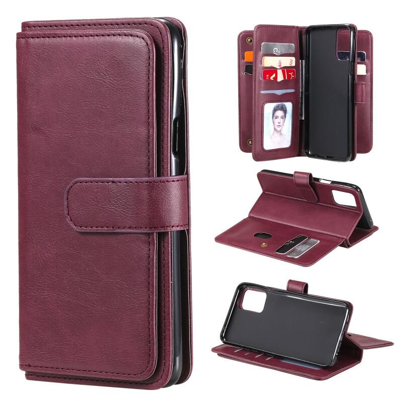 Για το LG K42 Πολυλειτουργική μαγνητική χάλκινη πόρπη Οριζόντια Flip Solid Color δερμάτινη θήκη με 10 υποδοχές για κάρτες & πορτοφόλι & θήκη & κορνίζα φωτογραφιών (κόκκινο κρασί)