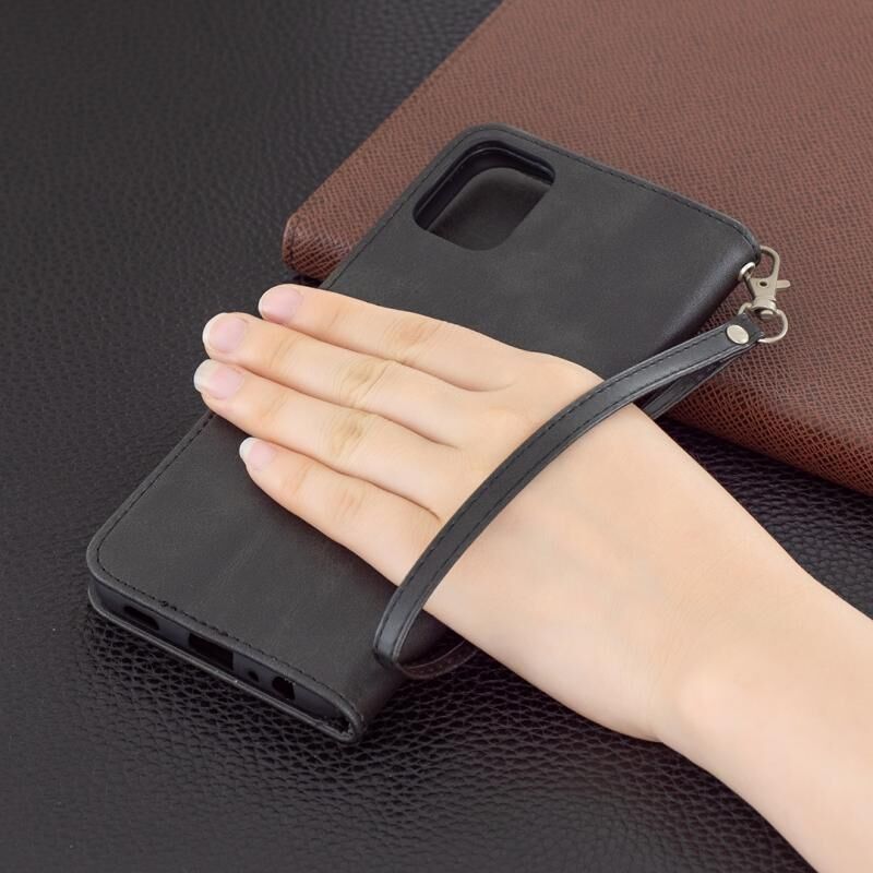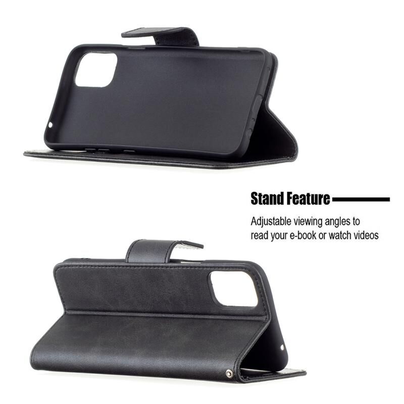 For LG K42 Retro Lambskin Texture Pure Color Horizontal Flip PU Leather Case with Holder & Card Slots & Wallet & Lanyard(Black)