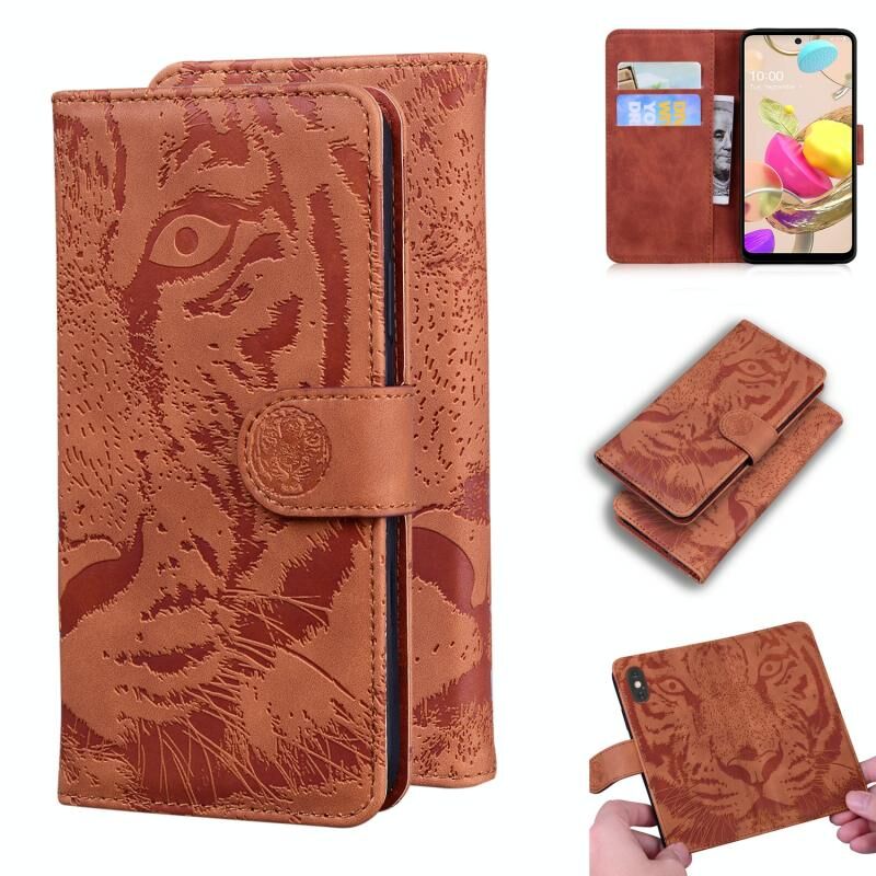 For LG K42 Tiger Embossing Pattern Horizontal Flip Leather Case with Holder & Card Slots & Wallet(Brown)