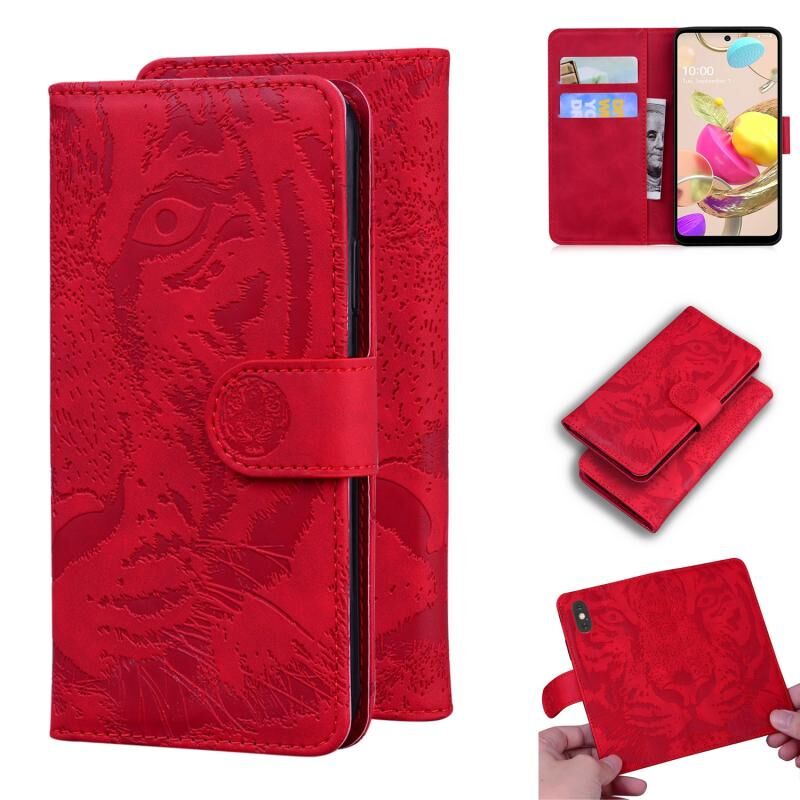 For LG K42 Tiger Embossing Pattern Horizontal Flip Leather Case with Holder & Card Slots & Wallet(Red)