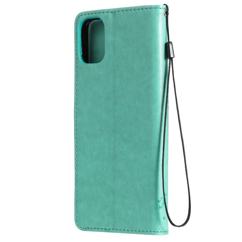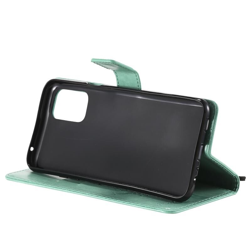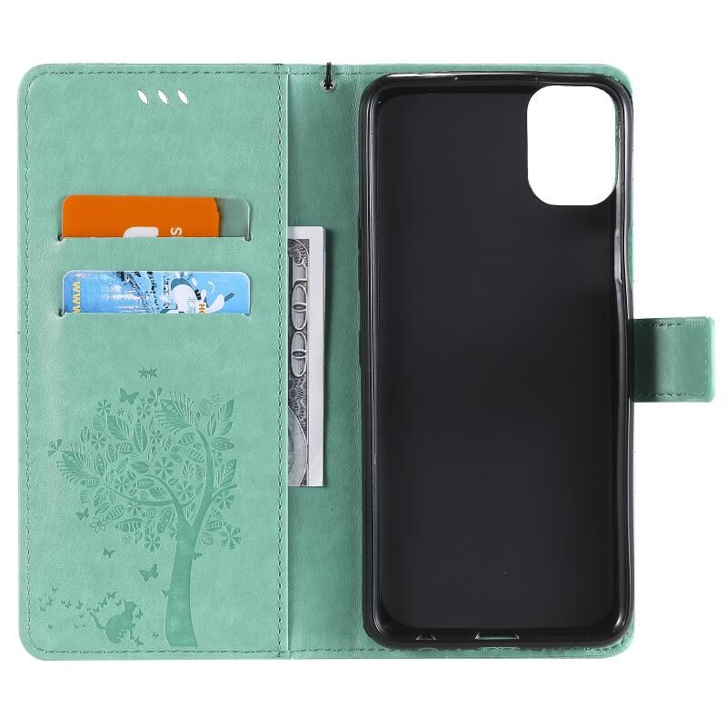 For LG K42 Tree & Cat Pattern Pressed Printing Horizontal Flip PU Leather Case with Holder & Card Slots & Wallet & Lanyard(Green)