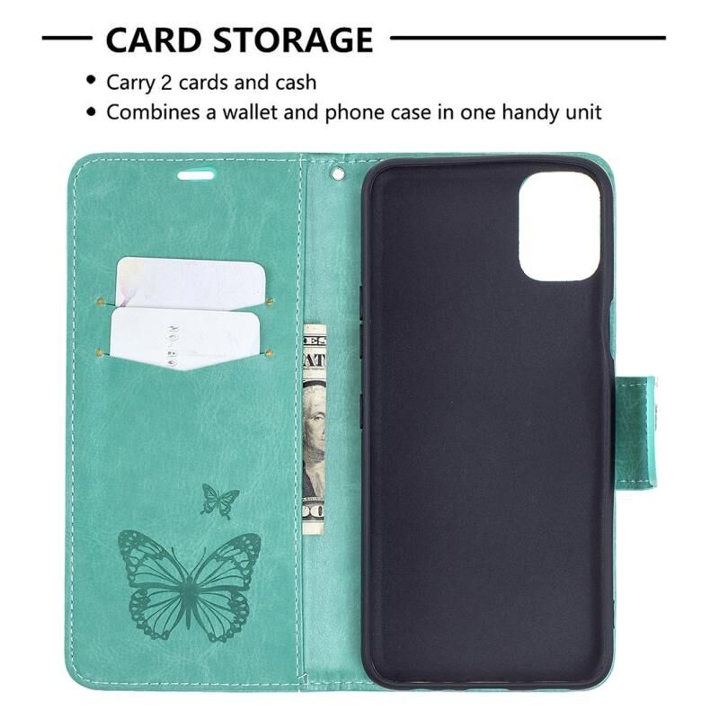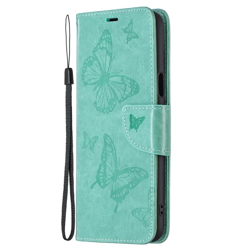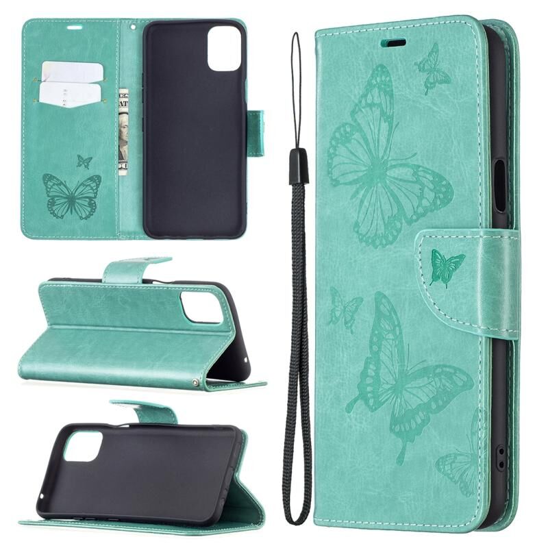 Για LG K42 Δύο πεταλούδες ανάγλυφο μοτίβο οριζόντια Flip δερμάτινη θήκη με κάτοχο & υποδοχή για κάρτες & πορτοφόλι & κορδόνι (πράσινο)