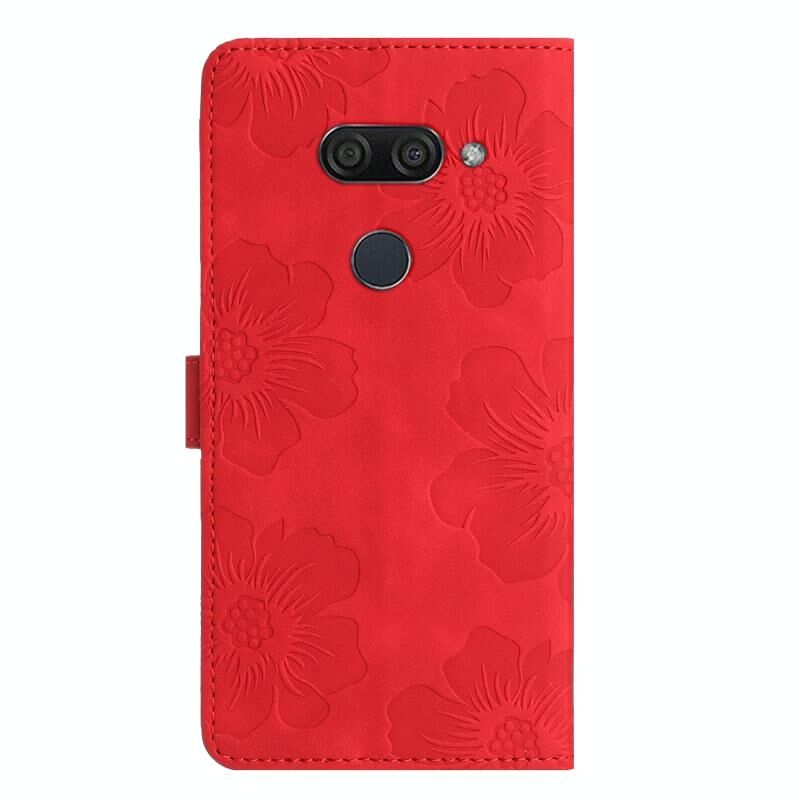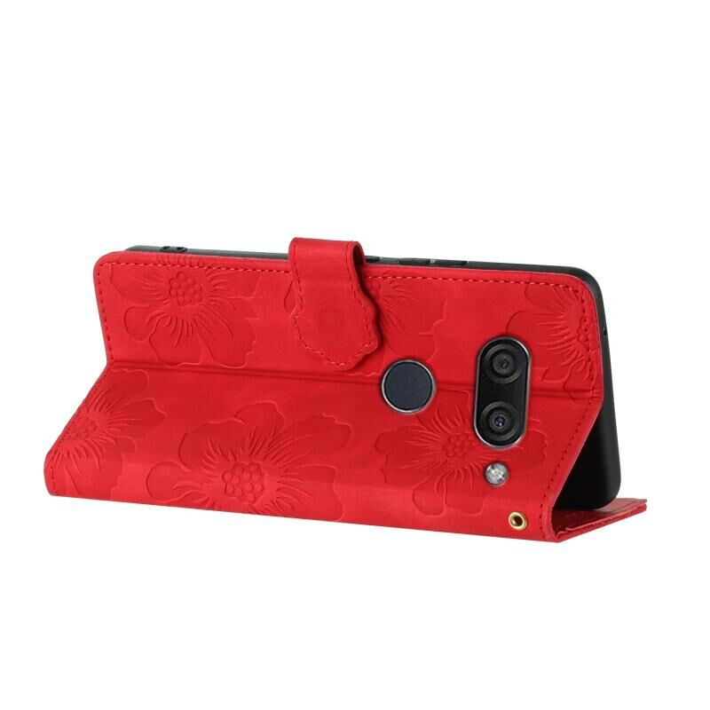 Για LG K50 λουλούδι ανάγλυφο μοτίβο δερμάτινη θήκη τηλεφώνου (κόκκινο)