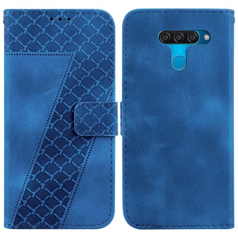 Για LG K50/Q60 7-σχήμα ανάγλυφο δέρμα τηλέφωνο υπόθεση (μπλε)