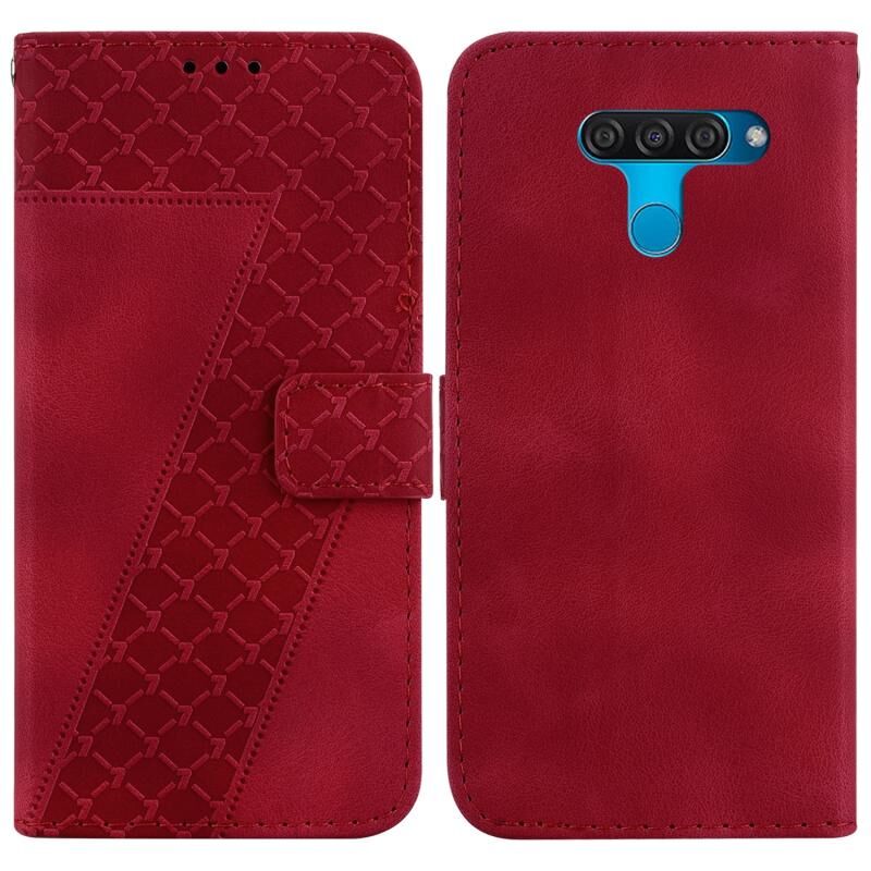 Για LG K50/Q60 7-σχήμα ανάγλυφο δέρμα τηλέφωνο υπόθεση (κόκκινο)