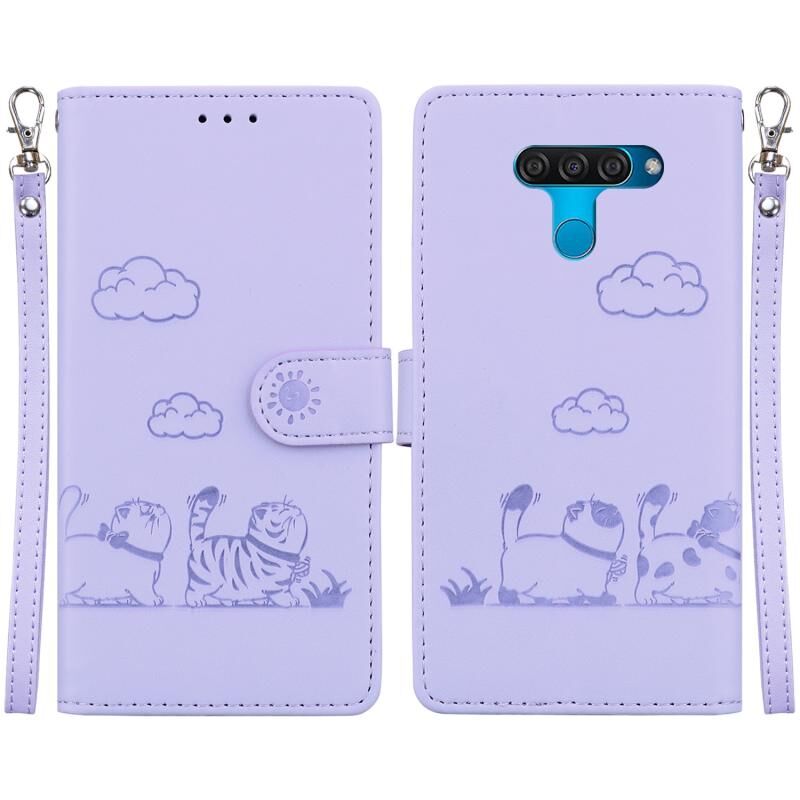 Θήκη τηλεφώνου από δέρμα με χαριτωμένες γάτες για LG K50 / Q60 (Χρυσό ροζ)