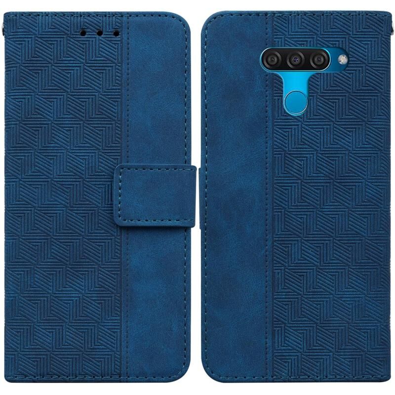 Για LG K50 / Q60 γεωμετρική ανάγλυφη δερμάτινη θήκη τηλεφώνου (μπλε)