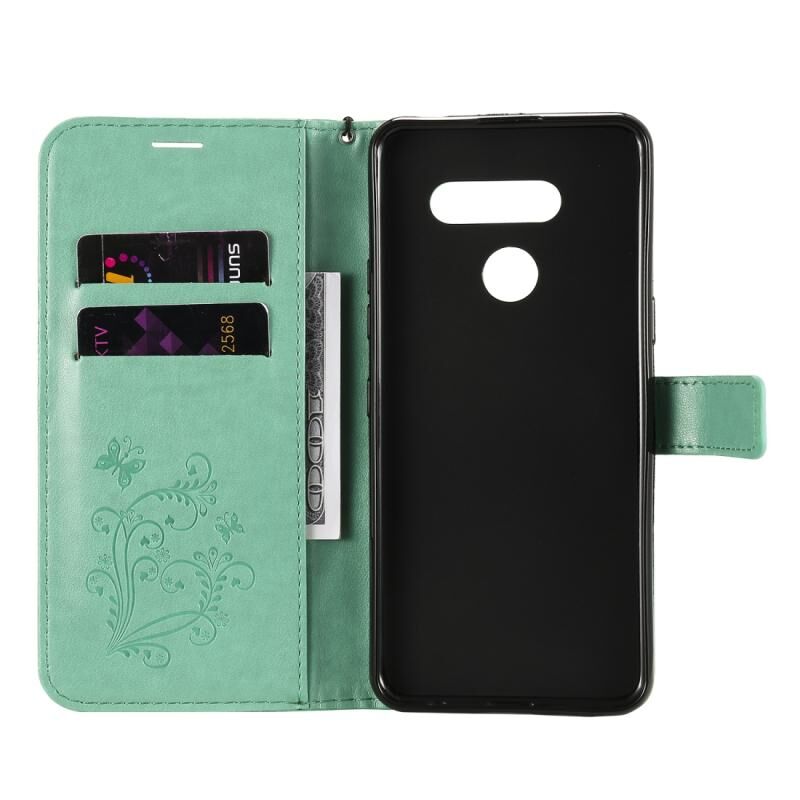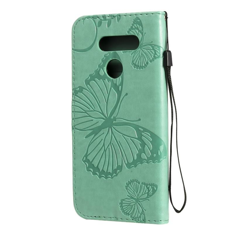 Θήκη δέρματος οριζόντιας αναδίπλωσης για LG K50S με ανάγλυφο σχέδιο 3D πεταλούδας, με βάση, θήκη καρτών, πορτοφόλι και κορδόνι (Πράσινο)
