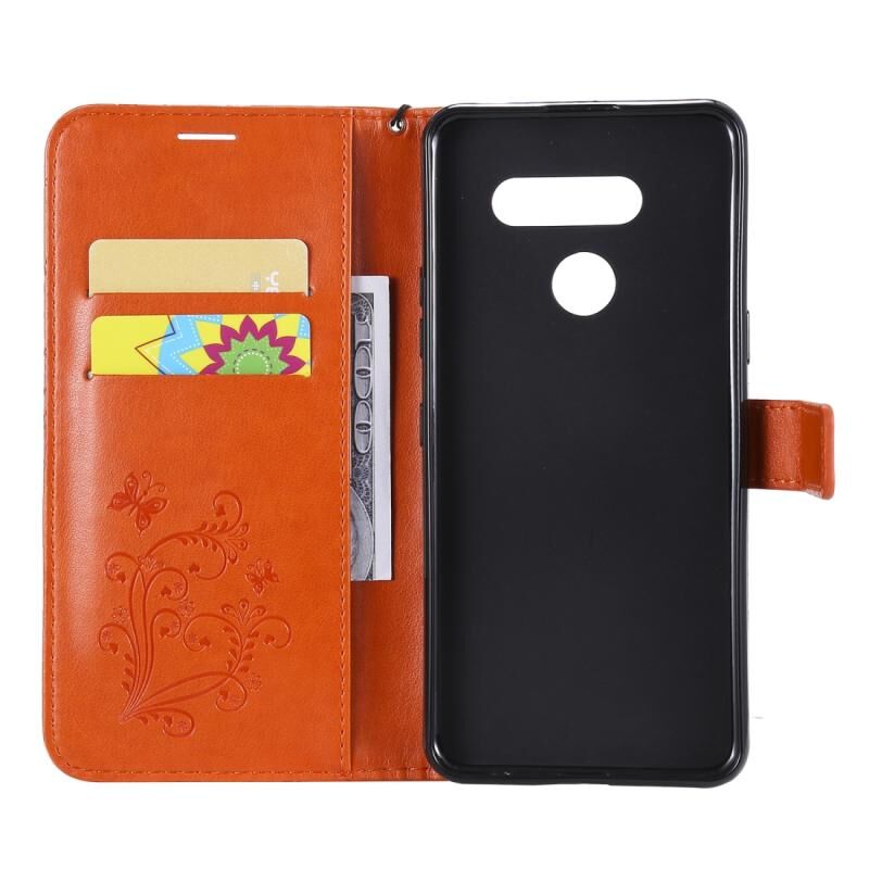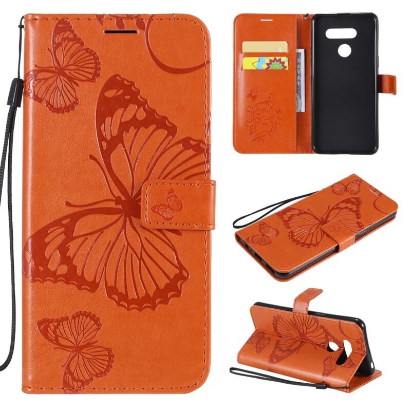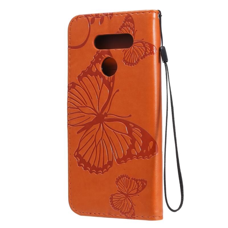 Θήκη για LG K50S, δερμάτινη, οριζόντια, με ανάγλυφο σχέδιο 3D πεταλούδας, με βάση, θήκη για κάρτες, πορτοφόλι και λουρί (Μωβ)