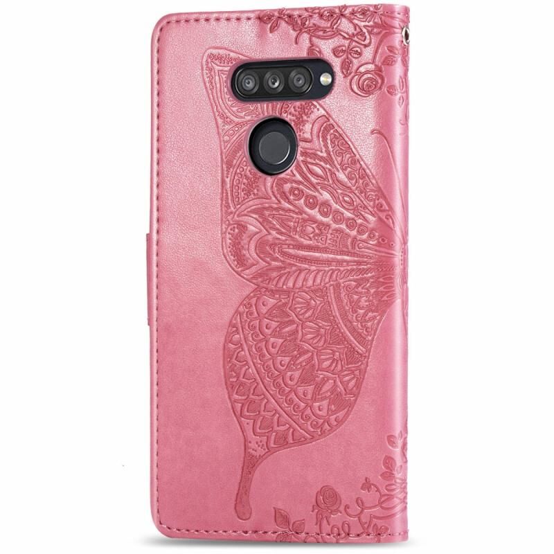 Θήκη δέρματος οριζόντιας αναδίπλωσης για LG K50S με ανάγλυφο σχέδιο πεταλούδας, λουλουδιών, με βάση στήριξης / υποδοχή κάρτας / πορτοφόλι / κορδόνι (Μαύρο)