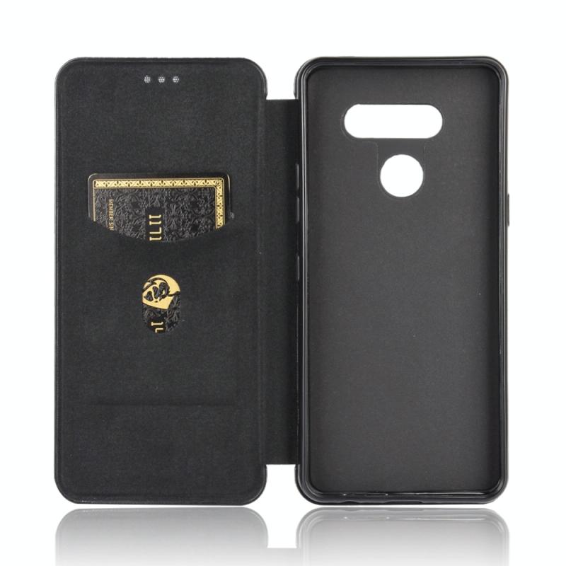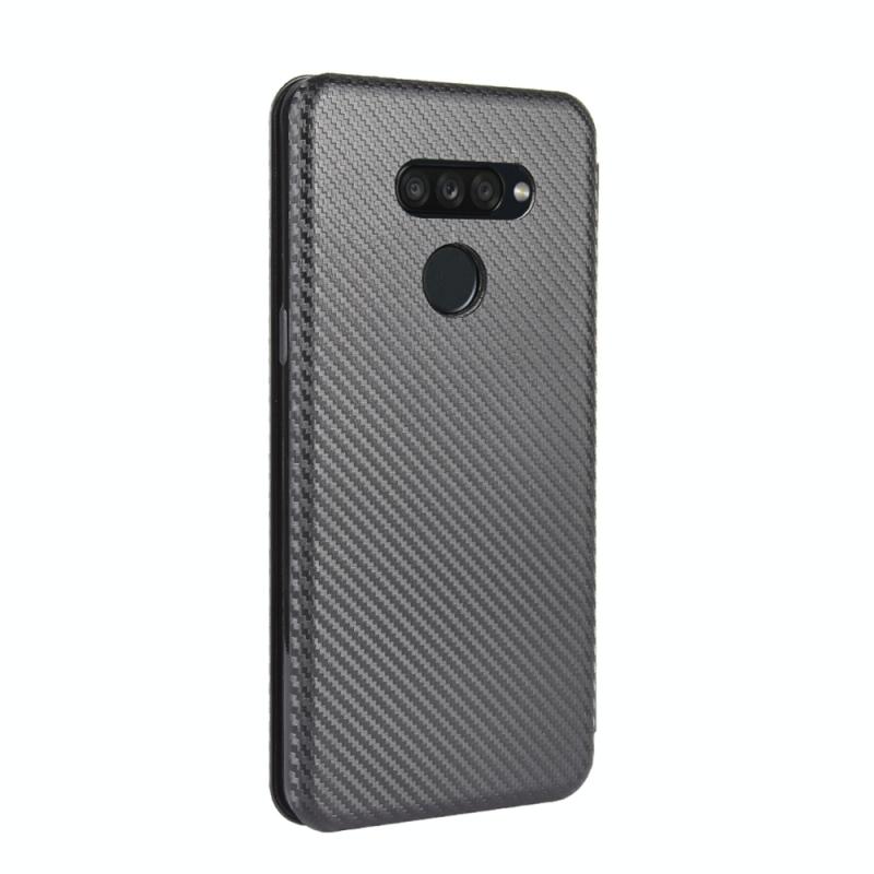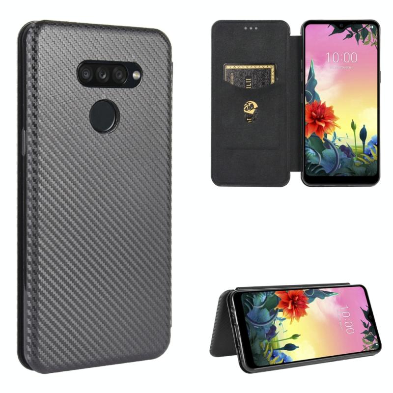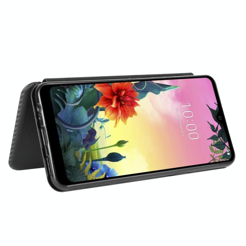 For LG K50S Carbon Fiber Texture Horizontal Flip TPU + PC + PU Leather Case with Card Slot(Black)