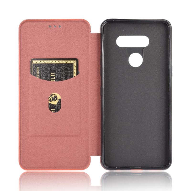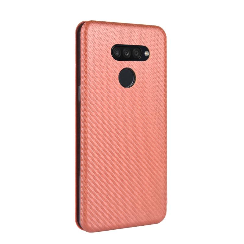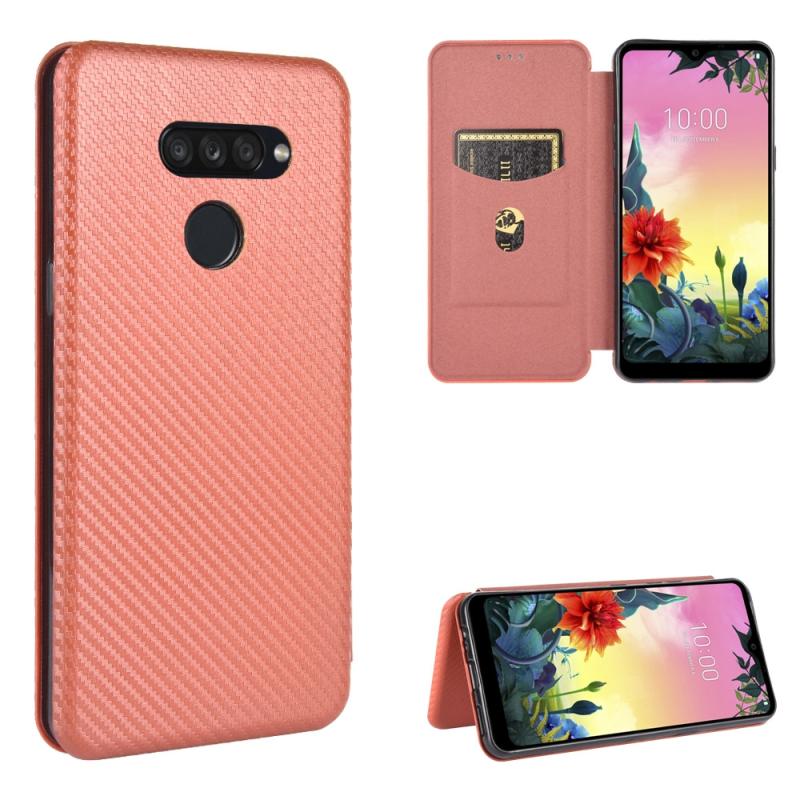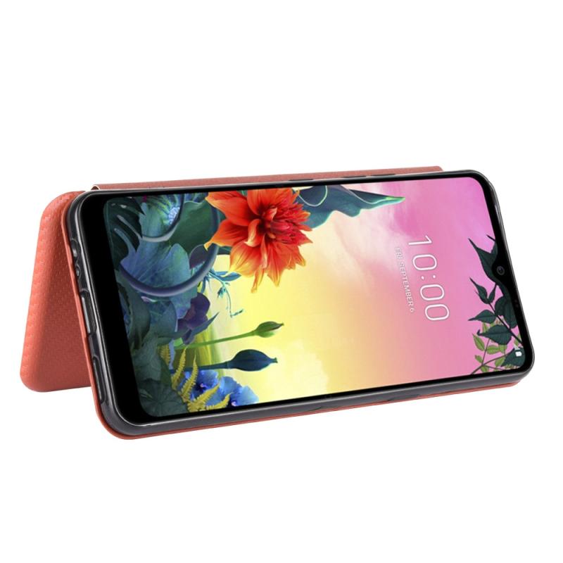 For LG K50S Carbon Fiber Texture Horizontal Flip TPU + PC + PU Leather Case with Card Slot(Brown)