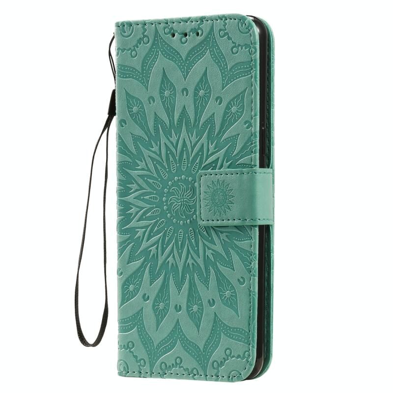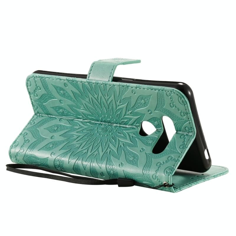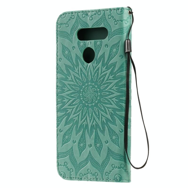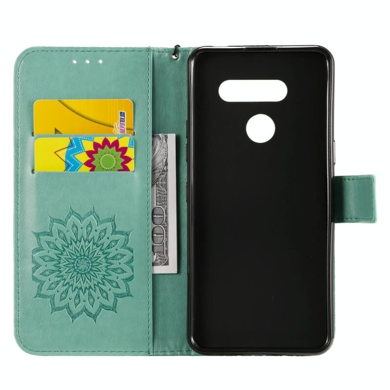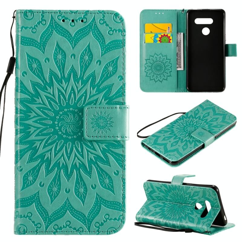 Για LG K50S Πιεσμένη εκτύπωση ηλιοτρόπιο μοτίβο οριζόντια Flip PU δέρμα θήκη κάτοχος & υποδοχές για κάρτες & πορτοφόλι & κορδόνι (πράσινο)