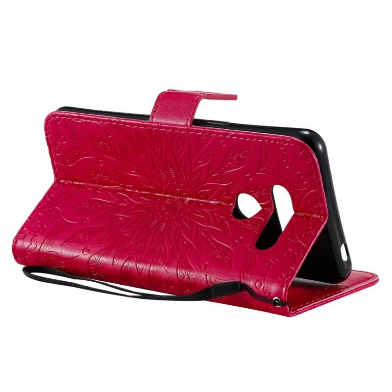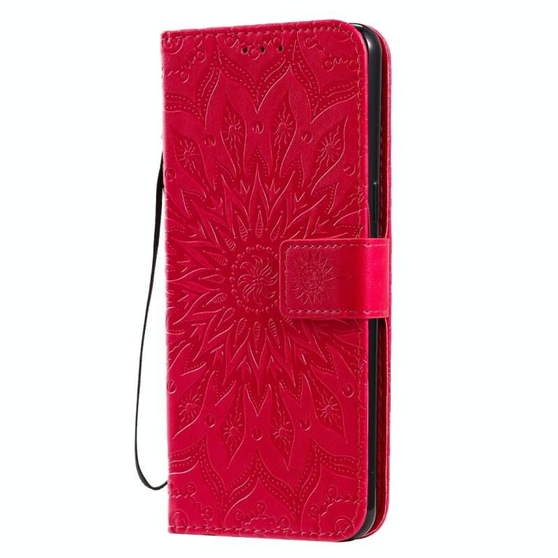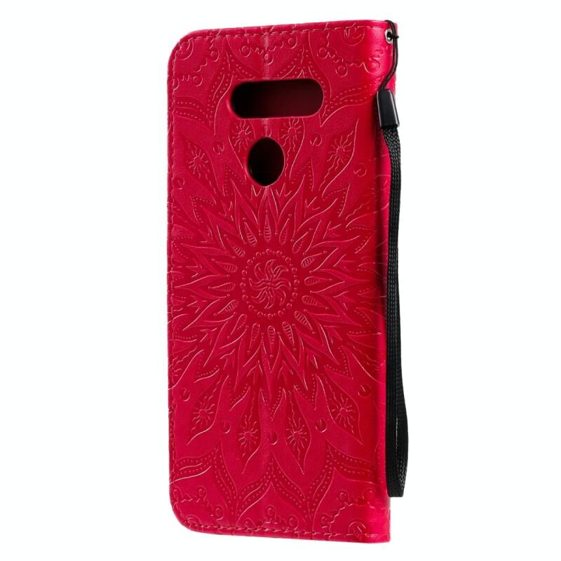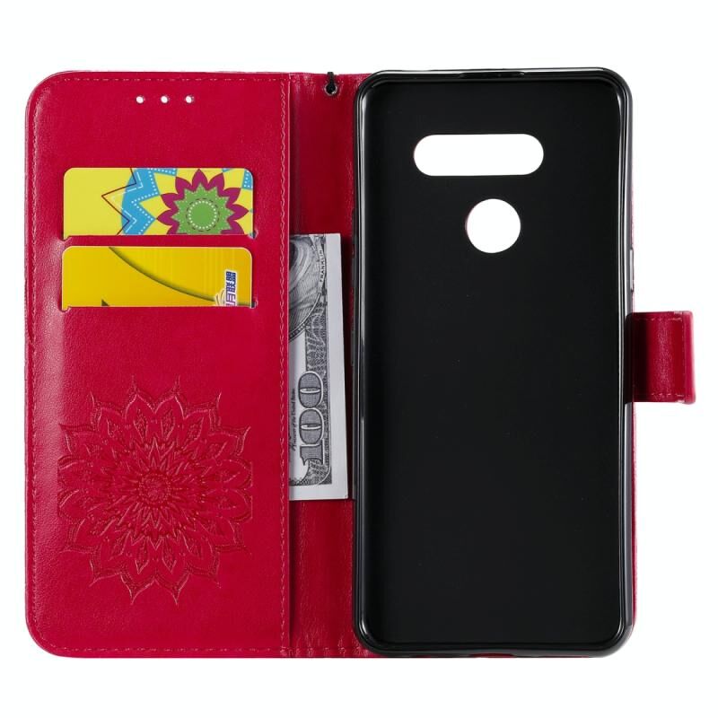 Για LG K50S Πιεσμένη εκτύπωση ηλιοτρόπιο μοτίβο οριζόντια Flip PU δέρμα θήκη κάτοχος & υποδοχές για κάρτες & πορτοφόλι & κορδόνι (κόκκινο)