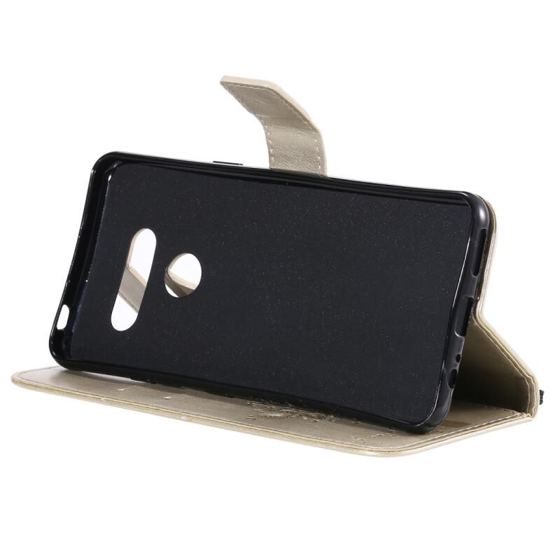 Θήκη δέρματος οριζόντιας αναδίπλωσης για LG K50S με ανάγλυφο σχέδιο Δέντρου & Γάτας, με βάση στήριξης & θήκες καρτών & πορτοφόλι & κορδόνι (Πράσινο)