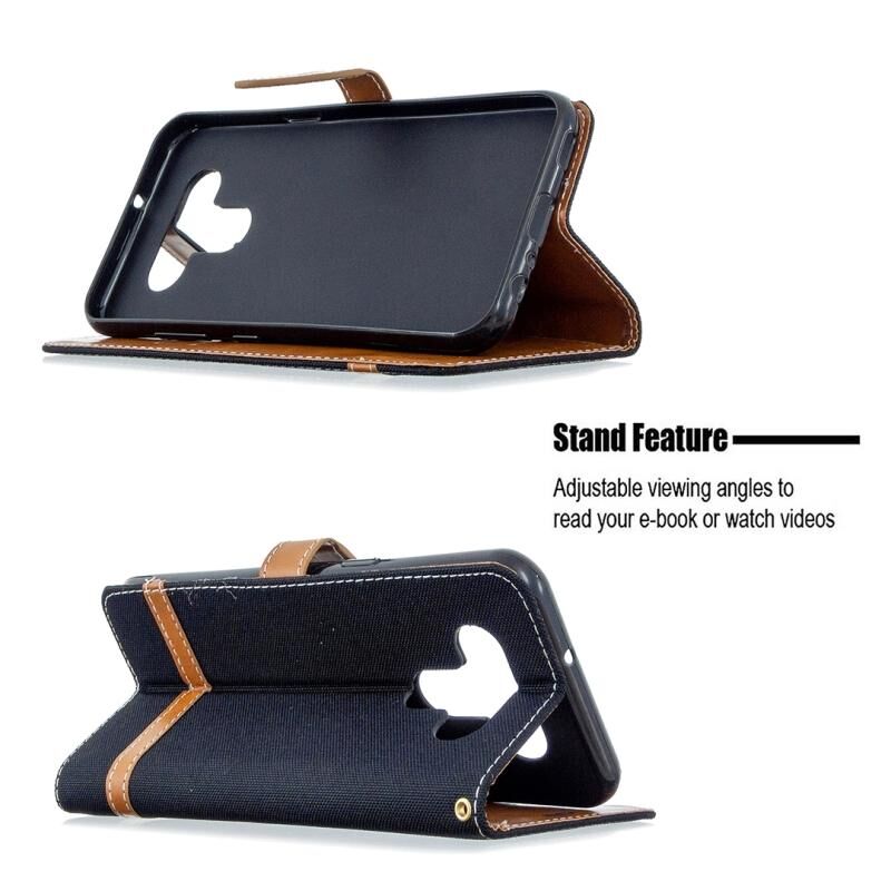 Για LG K51 Χρώμα ταιριάζει με Denim υφή οριζόντια Flip δερμάτινη θήκη με θήκη & υποδοχές για κάρτες & πορτοφόλι & κορδόνι (Μαύρο)
