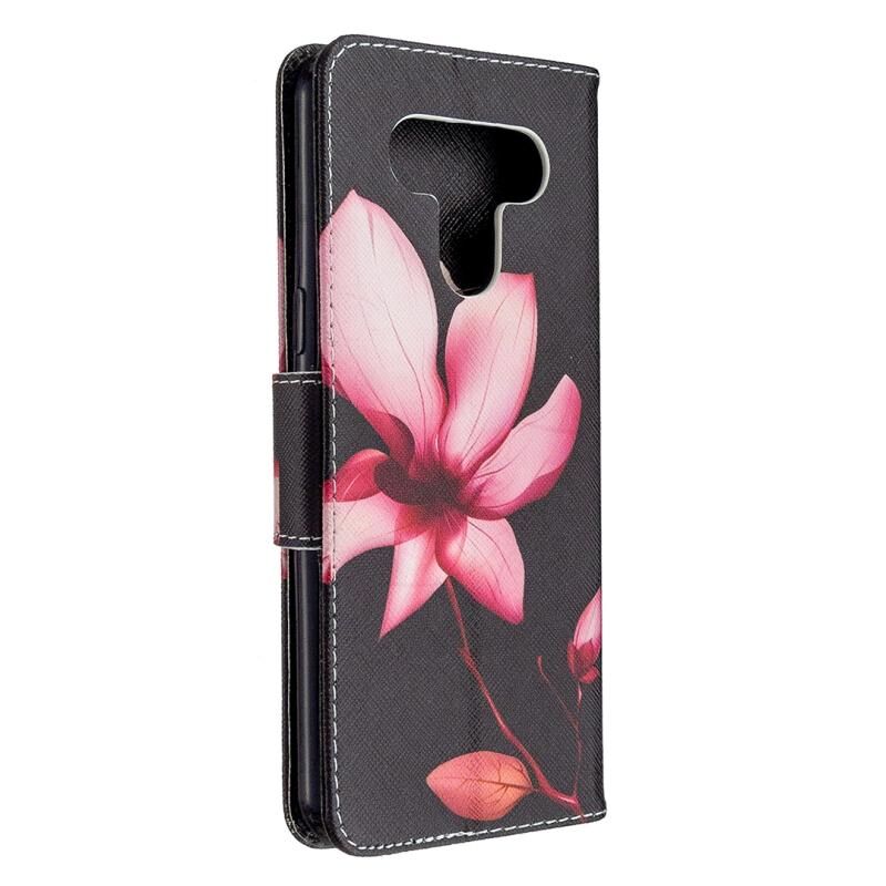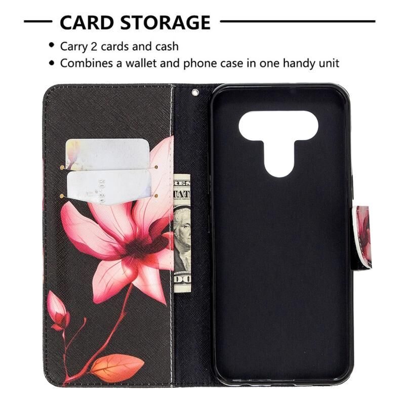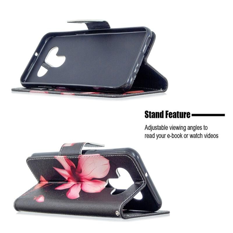 Θήκη δέρματος οριζόντιας αναδίπλωσης με σχέδιο πολύχρωμου σχεδίου για LG K51 με βάση & υποδοχές καρτών & πορτοφόλι (Λωτός)