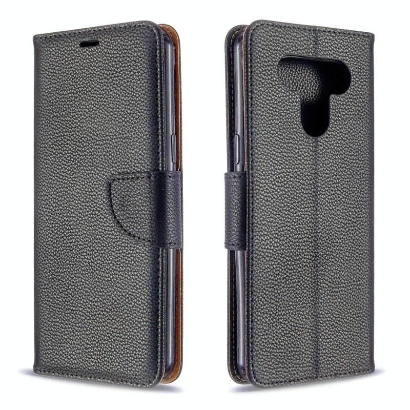 Για LG K51 Litchi υφή καθαρό χρώμα οριζόντια Flip PU δέρμα υπόθεση με θήκη & υποδοχές για κάρτες & πορτοφόλι & κορδόνι (μαύρο)