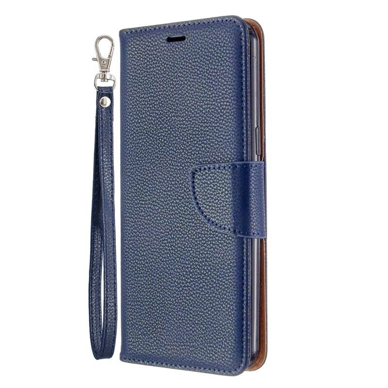 Για LG K51 Litchi υφή καθαρό χρώμα οριζόντια Flip PU δέρμα υπόθεση με θήκη & υποδοχές για κάρτες & πορτοφόλι & κορδόνι (σκούρο μπλε)