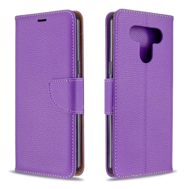Για LG K51 Litchi υφή καθαρό χρώμα οριζόντια Flip PU δέρμα υπόθεση με θήκη & υποδοχές για κάρτες & πορτοφόλι & κορδόνι (μωβ)