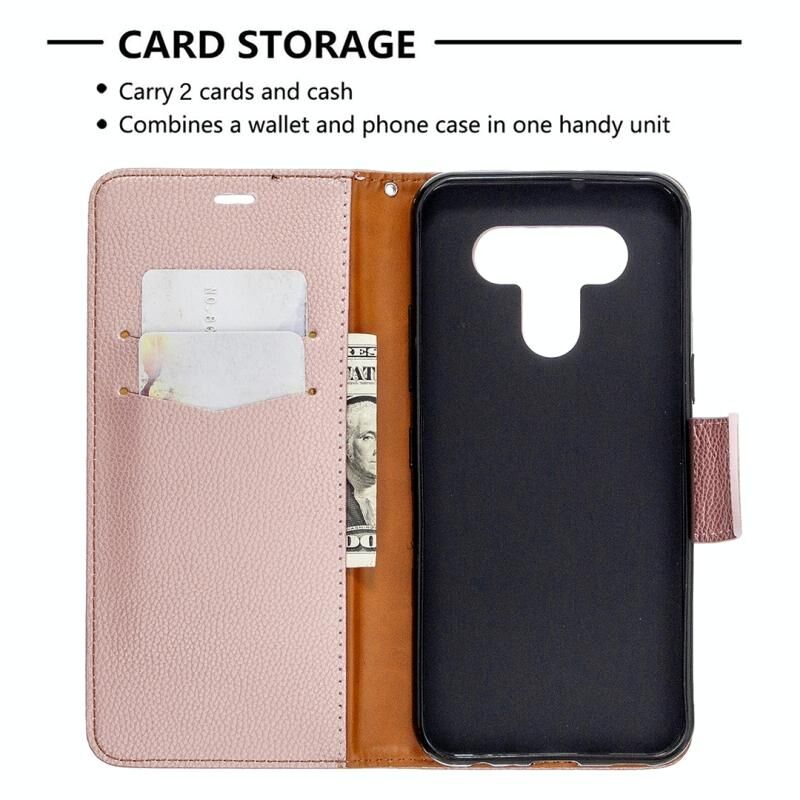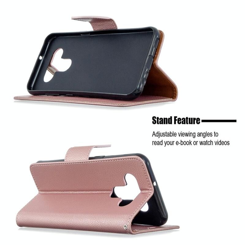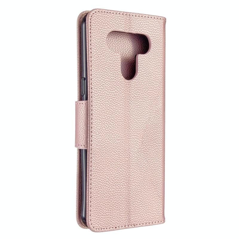 Για LG K51 Litchi Υφή καθαρό χρώμα οριζόντια Flip PU δέρμα υπόθεση με θήκη & υποδοχές για κάρτες & πορτοφόλι & κορδόνι (Rose Gold)