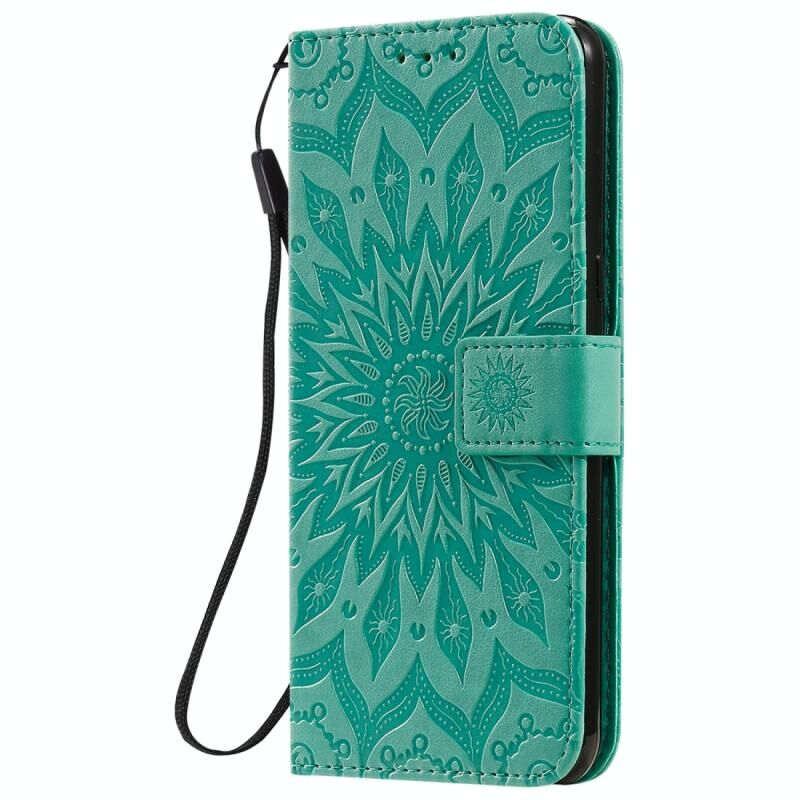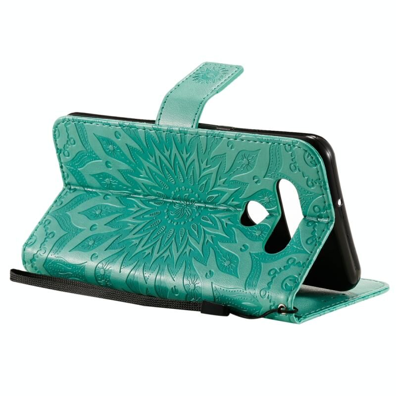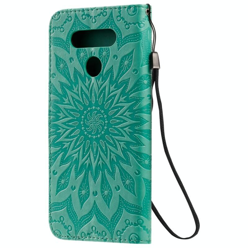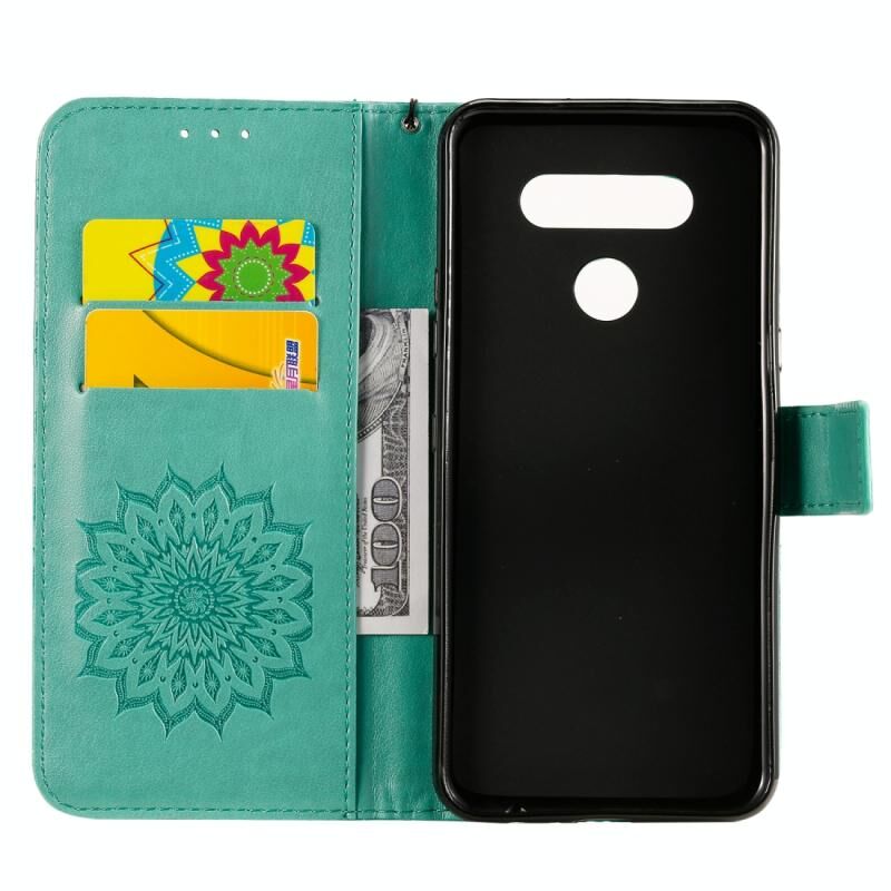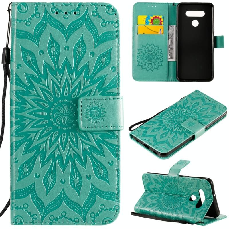 Για LG K51 Πιεσμένη εκτύπωση ηλιοτρόπιο μοτίβο οριζόντια Flip PU δέρμα θήκη κάτοχος & υποδοχές για κάρτες & πορτοφόλι & κορδόνι (πράσινο)