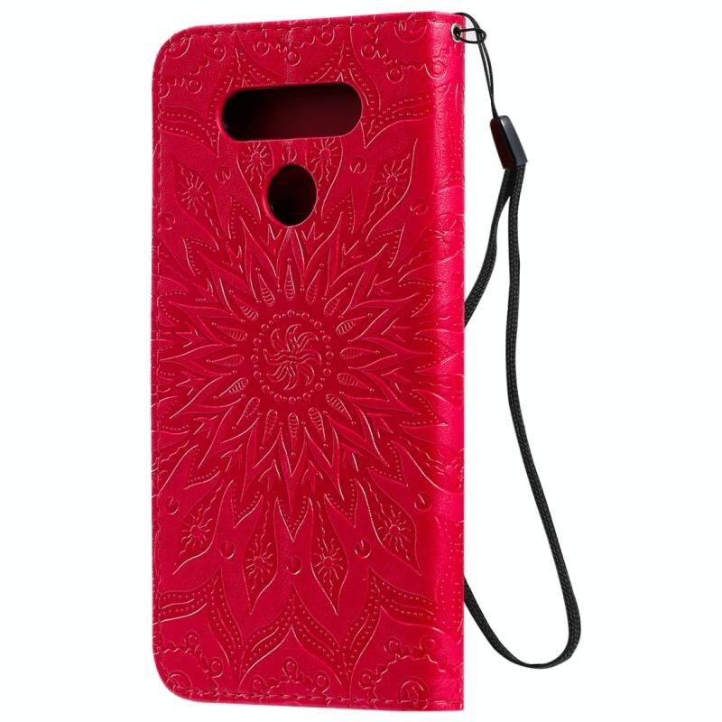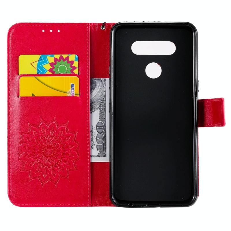 Για LG K51 Πιεσμένη εκτύπωση ηλιοτρόπιο μοτίβο οριζόντια Flip PU δέρμα θήκη κάτοχος & υποδοχές για κάρτες & πορτοφόλι & κορδόνι (κόκκινο)