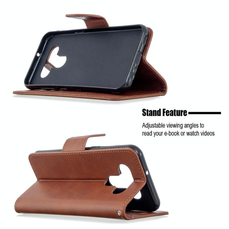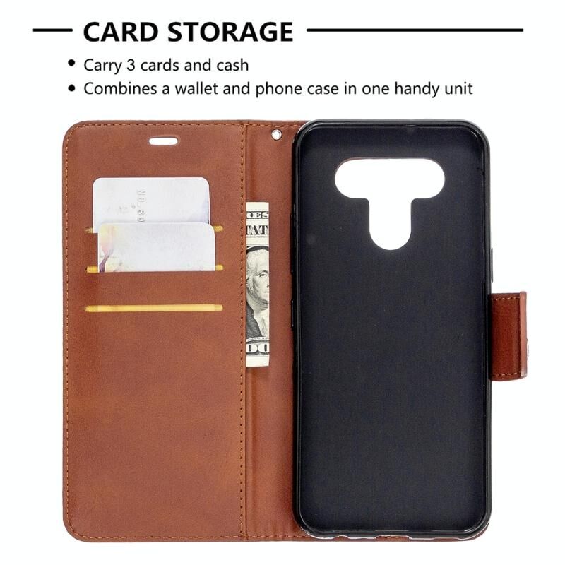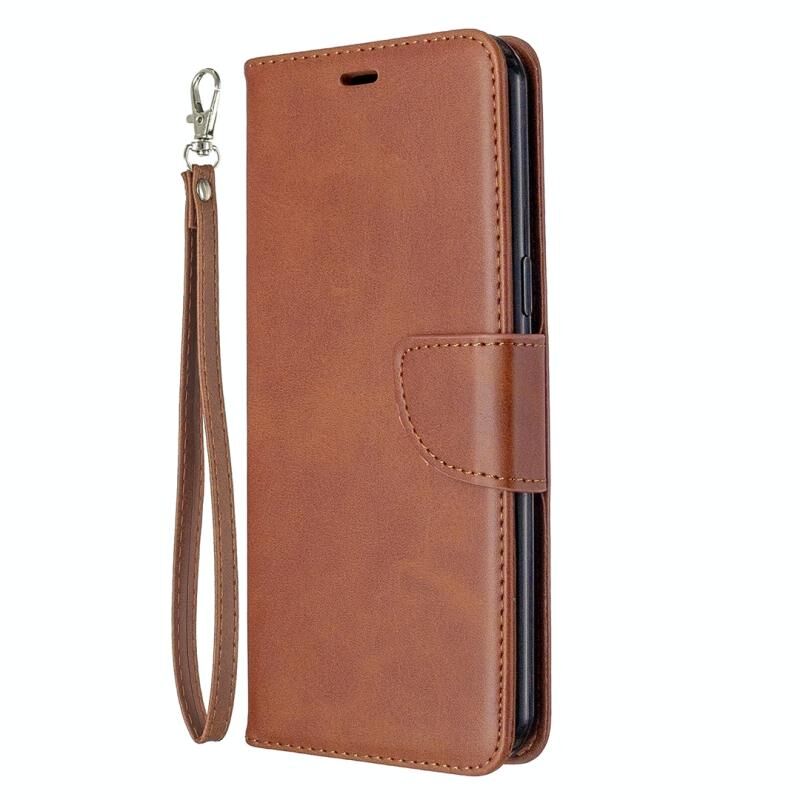 Για LG K51 Retro Lambskin υφή καθαρό χρώμα οριζόντια Flip PU δέρμα υπόθεση με θήκη & υποδοχές για κάρτες & πορτοφόλι & κορδόνι (καφέ)
