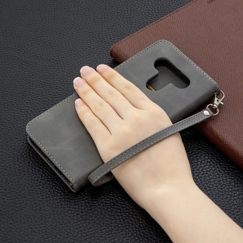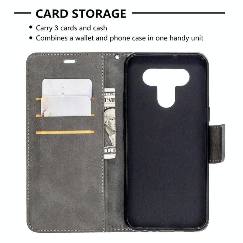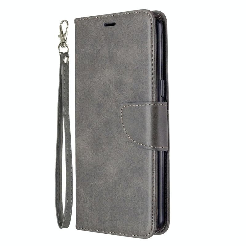 Για LG K51 Retro Lambskin υφή καθαρό χρώμα οριζόντια Flip PU δέρμα υπόθεση με θήκη & υποδοχές για κάρτες & πορτοφόλι & κορδόνι (γκρι)