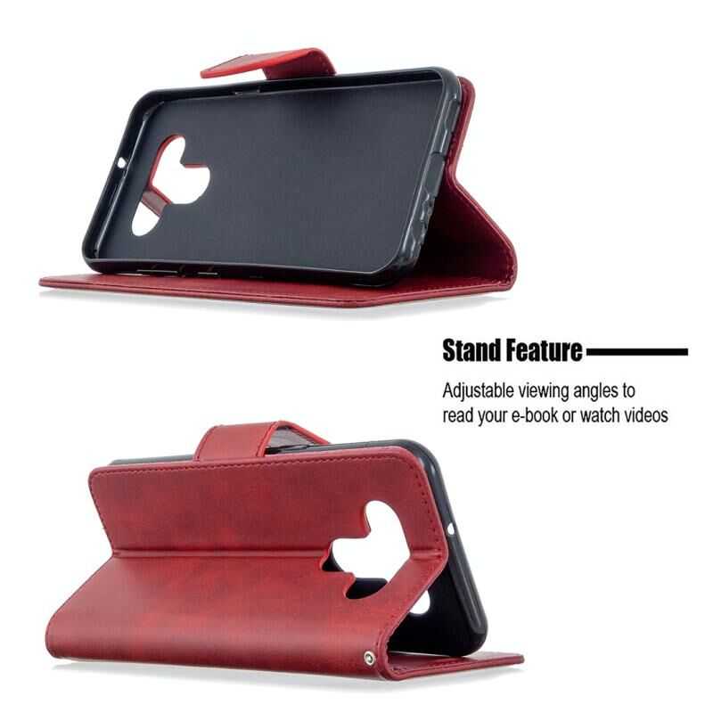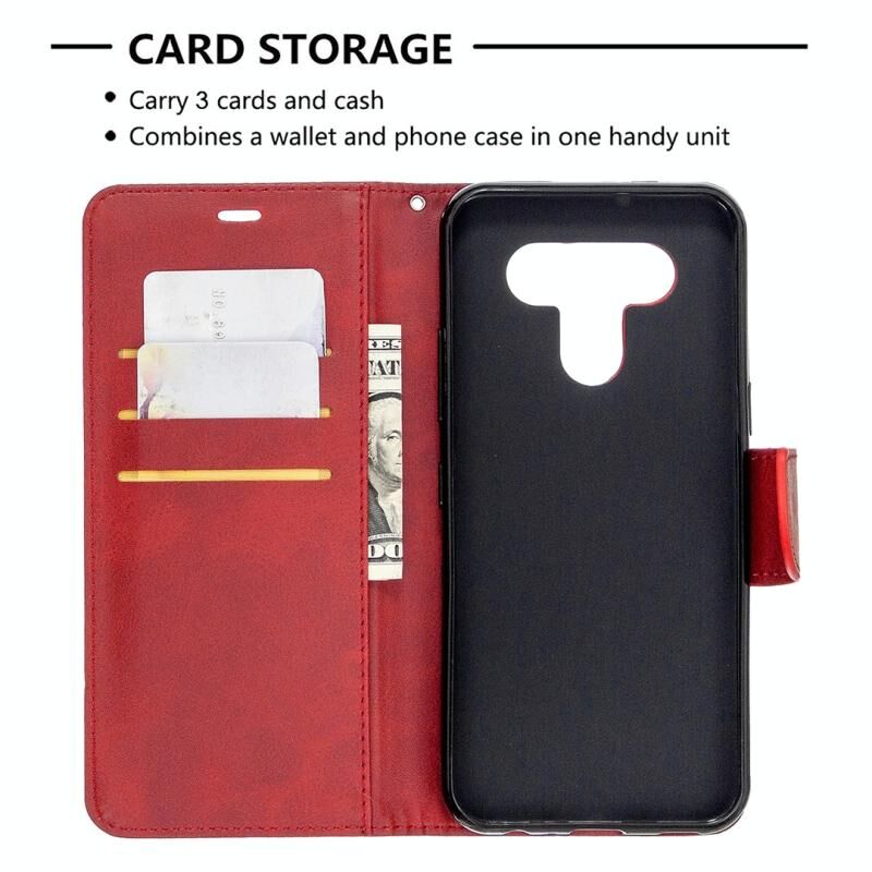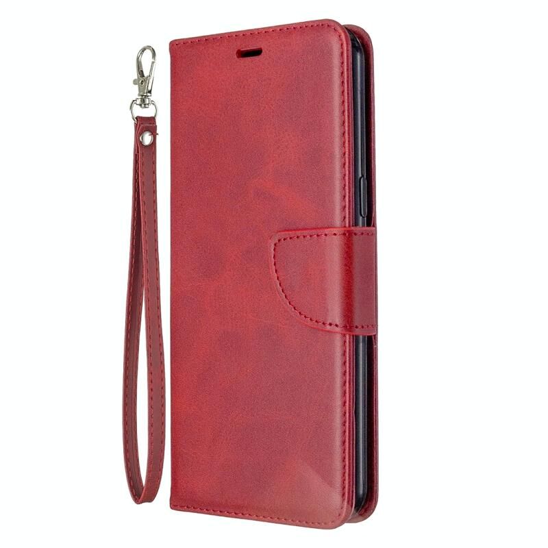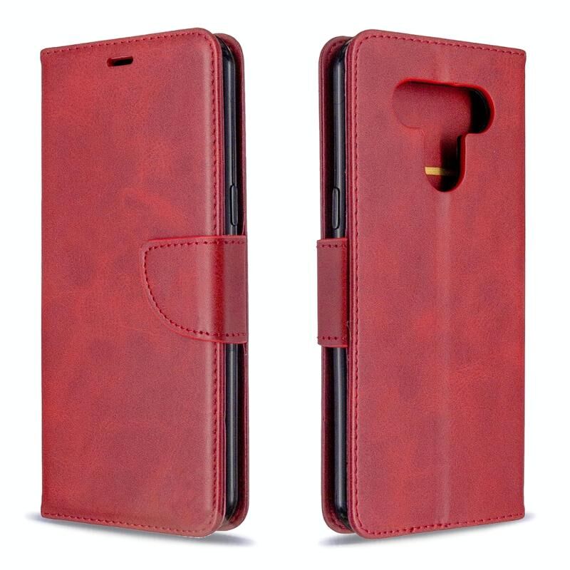 Για LG K51 Retro Lambskin υφή καθαρό χρώμα οριζόντια Flip PU δέρμα υπόθεση με θήκη & υποδοχές για κάρτες & πορτοφόλι & κορδόνι (κόκκινο)