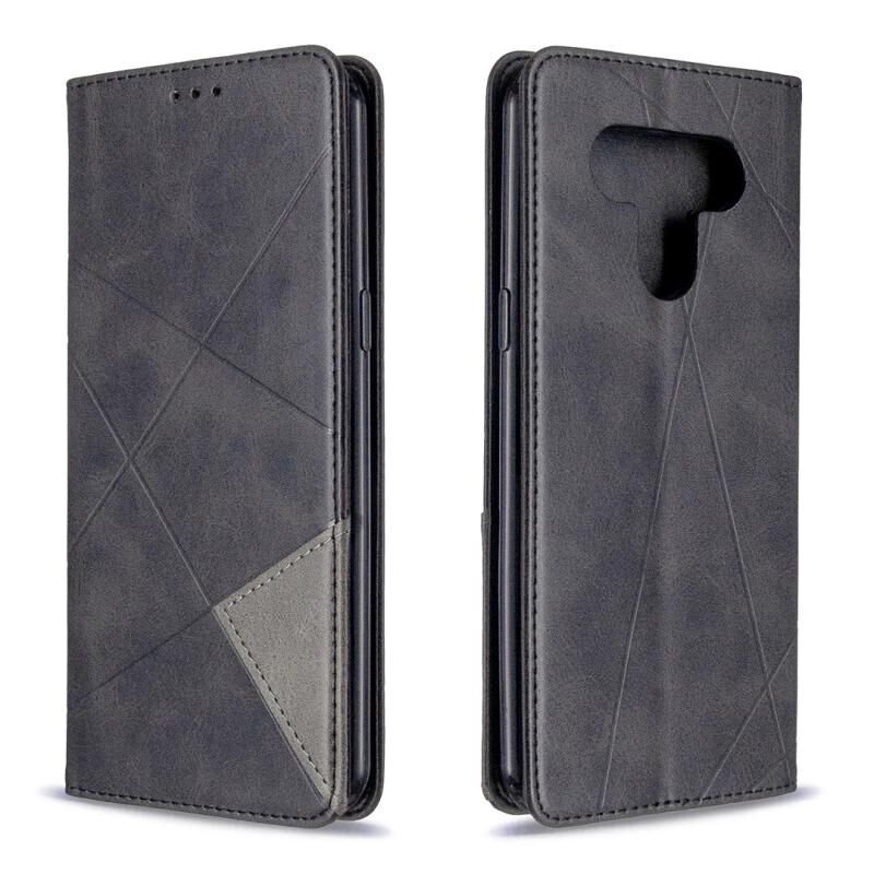Για το LG K51 Rhombus υφή οριζόντια Flip μαγνητική δερμάτινη θήκη με υποδοχές για κάρτες και πορτοφόλι (Μαύρο)
