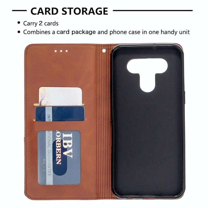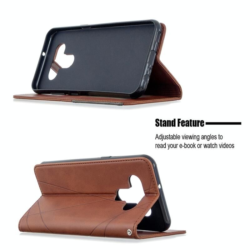 Για LG K51 Rhombus υφή οριζόντια Flip μαγνητική δερμάτινη θήκη με υποδοχές για κάρτες & πορτοφόλι (καφέ)